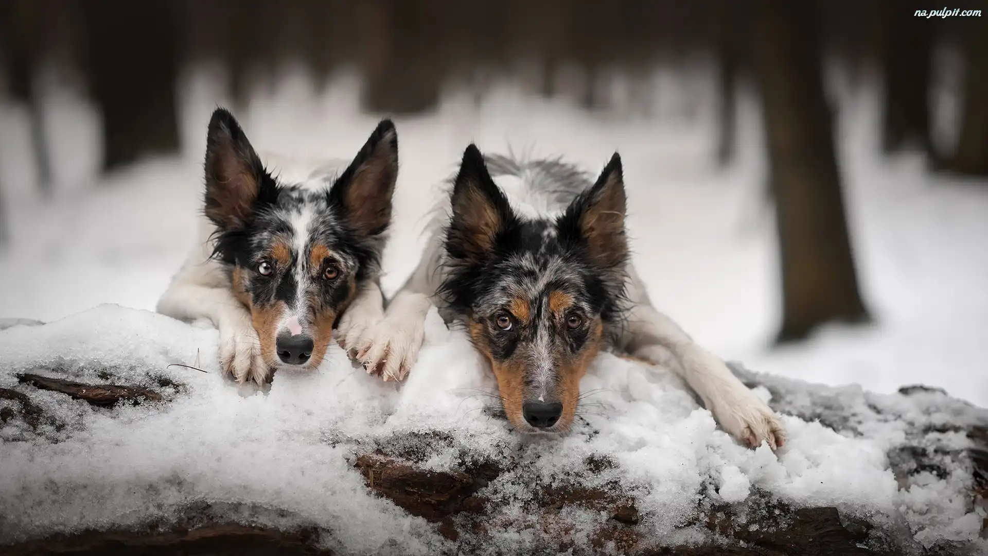 Śnieg, Border collie, Psy, Dwa, Drzewo Na Pulpit