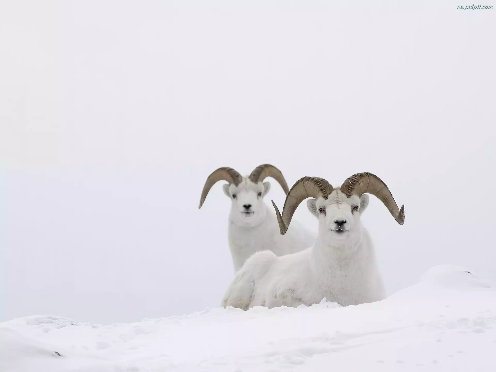 Śnieg, Rogi, Muflon, Kozice, Zima, Górskie Na Pulpit