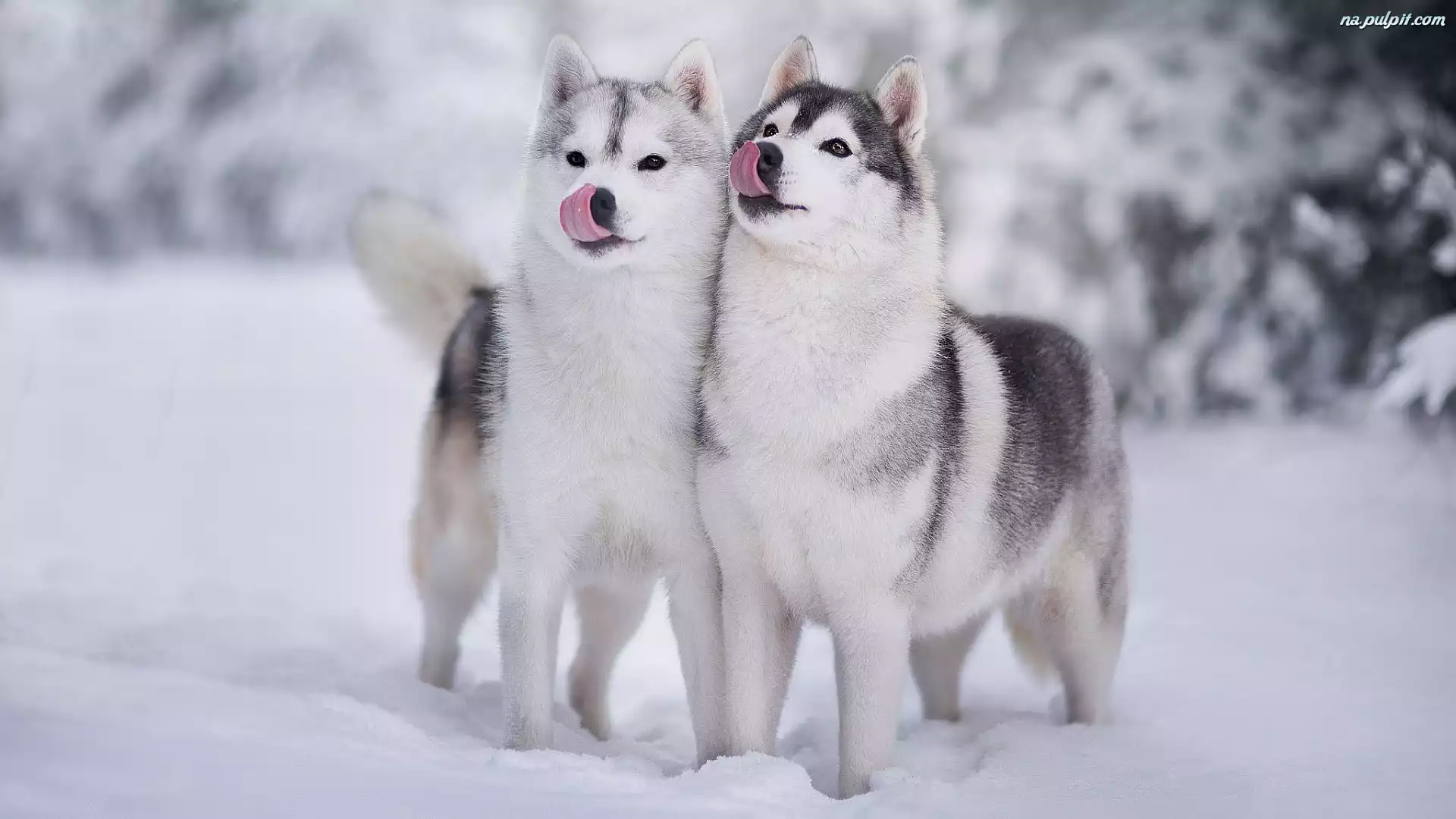 Śnieg, Siberian husky, Psy, Dwa, Zima Na Pulpit