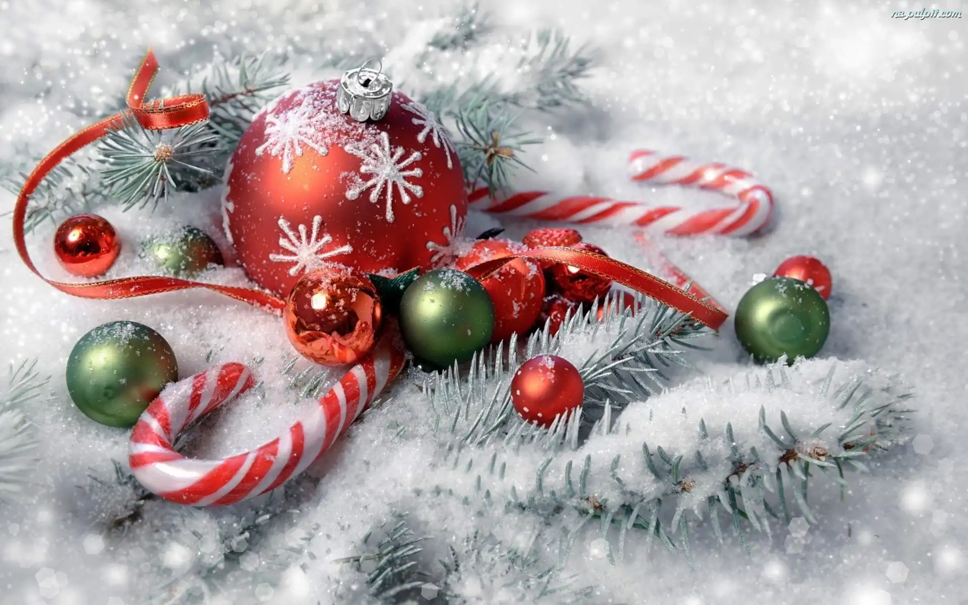 Bombki, Śnieg, Święta, Lizaki, Boże Narodzenie, Gałązki