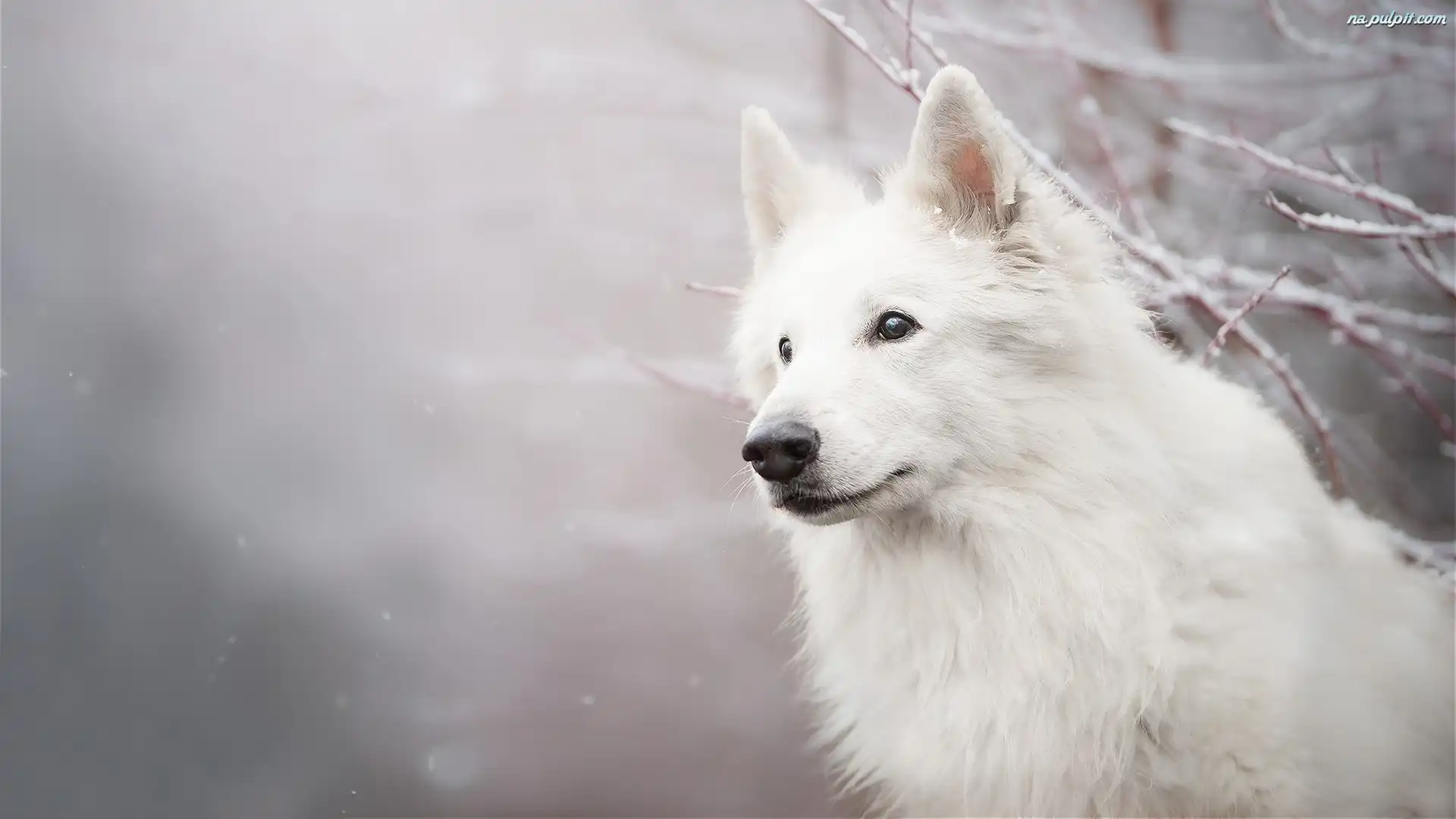 Śnieg, Mordka, Biały owczarek szwajcarski, Pies, Gałązki Na Pulpit