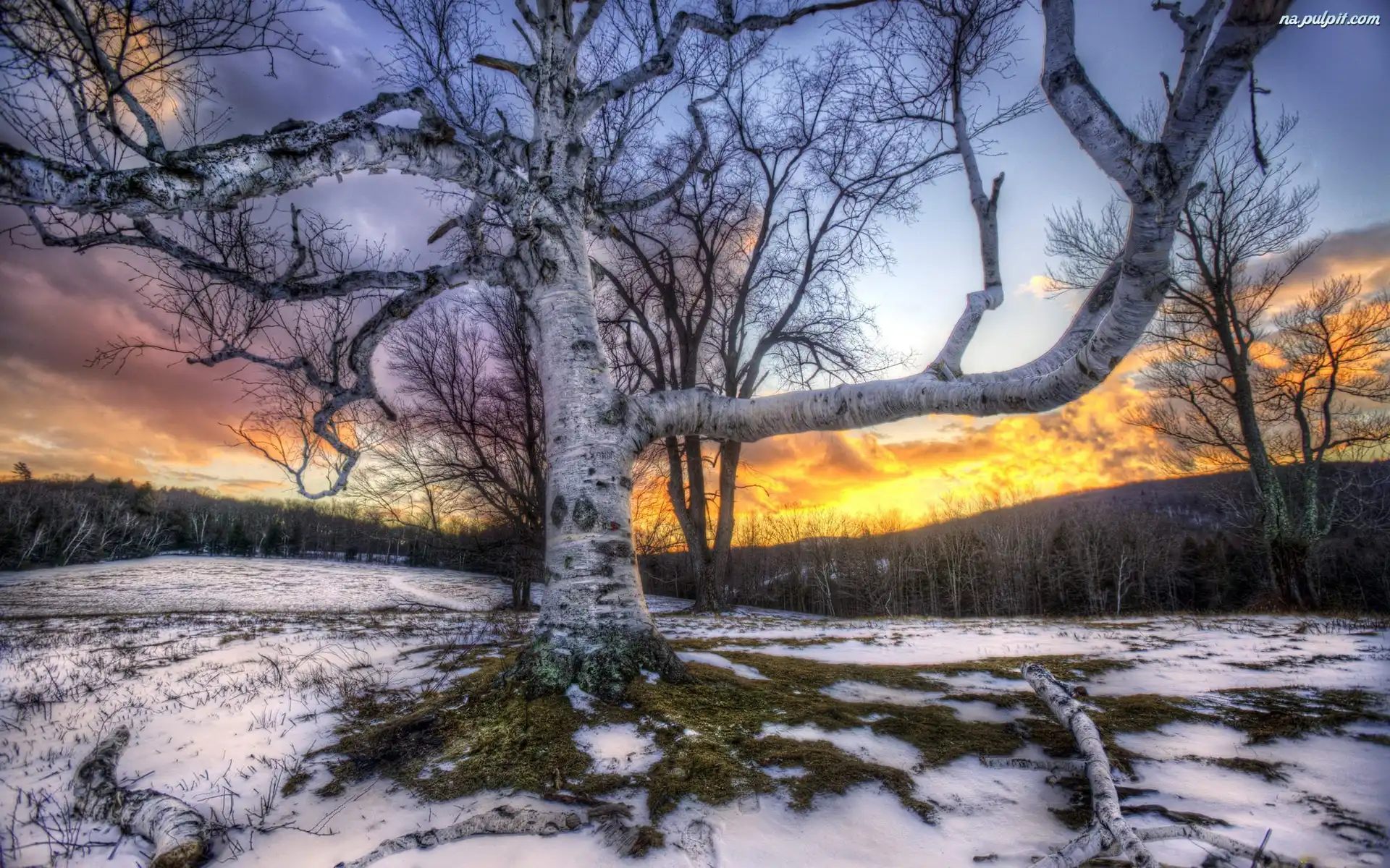 Gałęzie, Śnieg, Drzewa Na Pulpit
