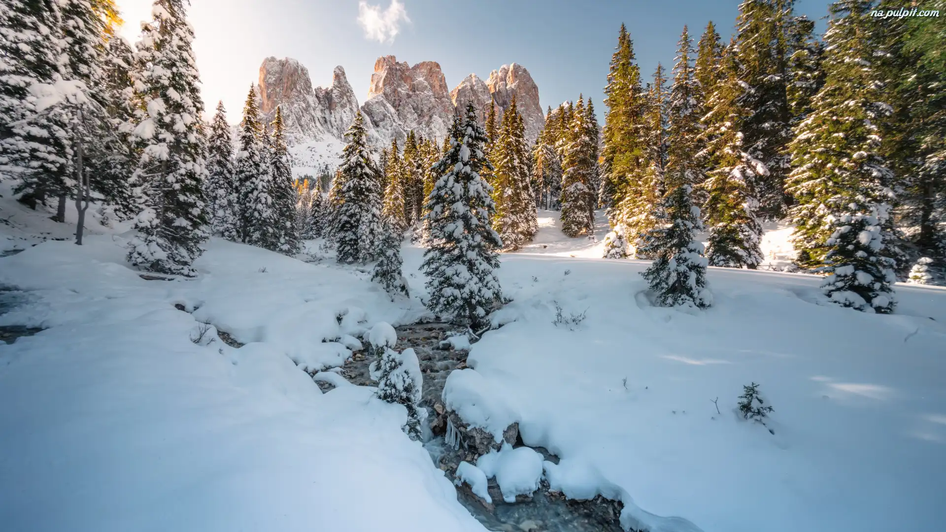 Góry, Śnieg, Strumyk, Las, Drzewa, Zima, Ośnieżone Na Pulpit