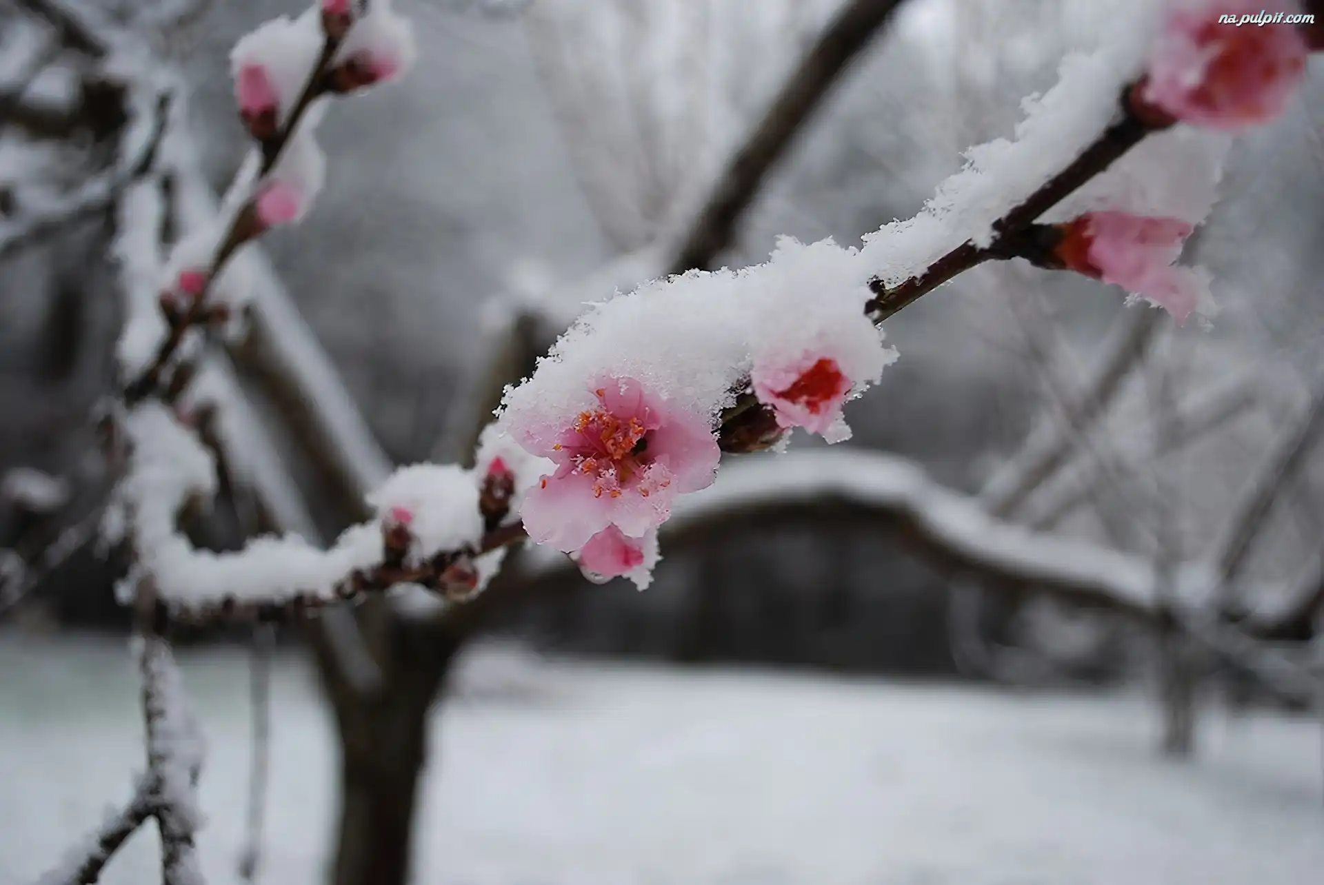 Wiśnia, Śnieg, Kwitnąca Na Pulpit