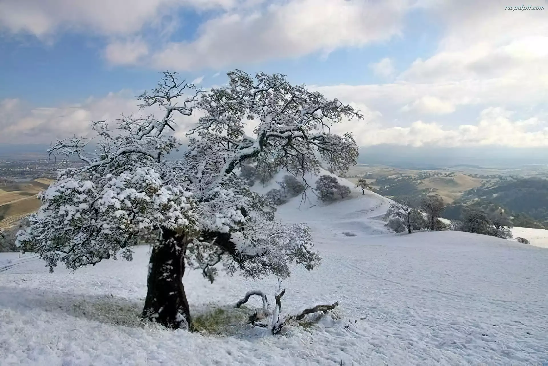 Wzgórze, Śnieg, Drzewo Na Pulpit
