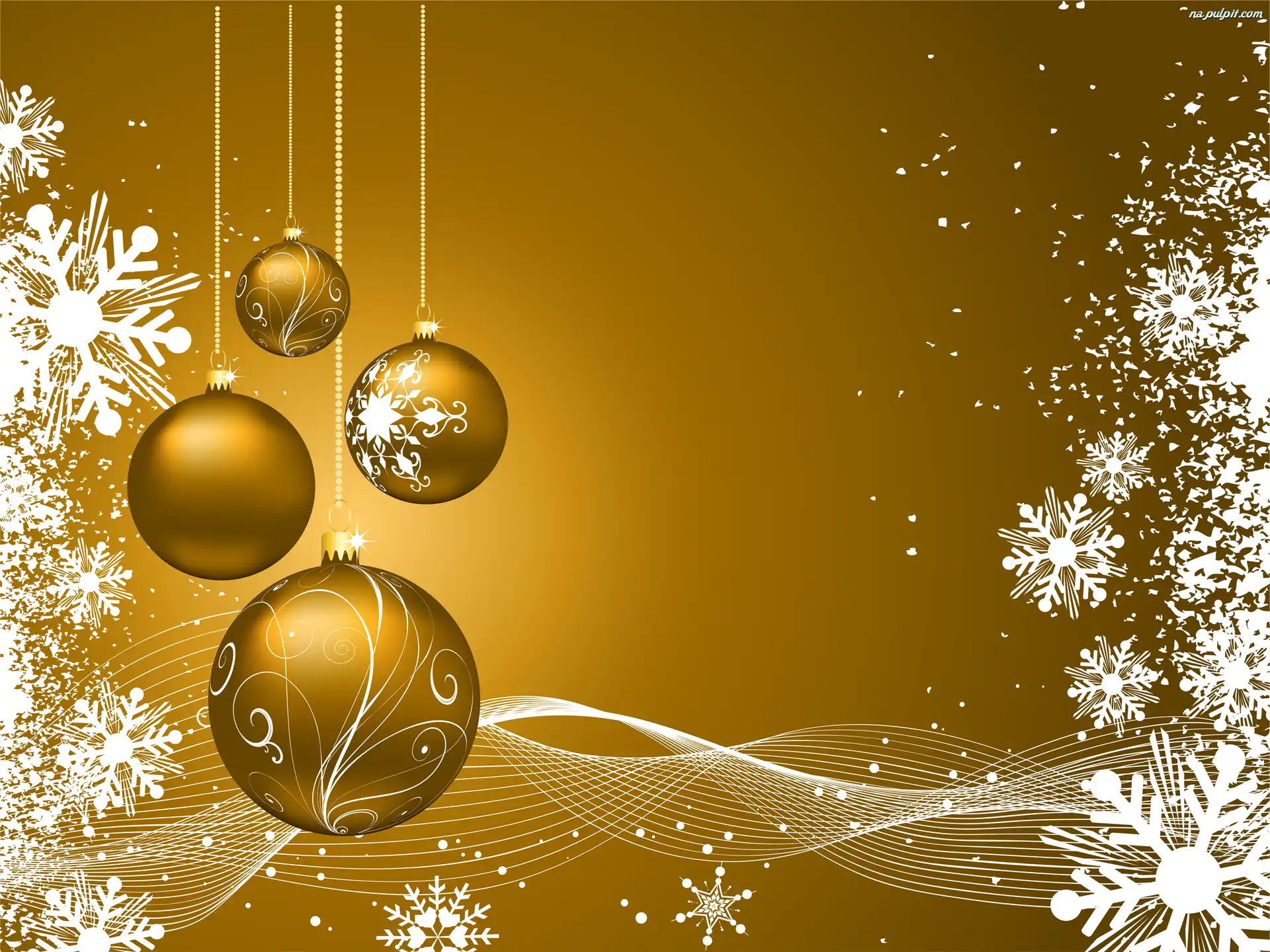 Śniegowe, Złota, Grafika, Gwiazdki, Bombki, Biało Na Pulpit