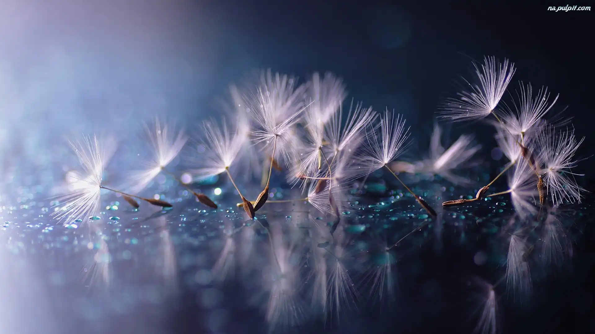 Niełupki, Odbicie, Makro, Krople, Dmuchawce, Woda Na Pulpit