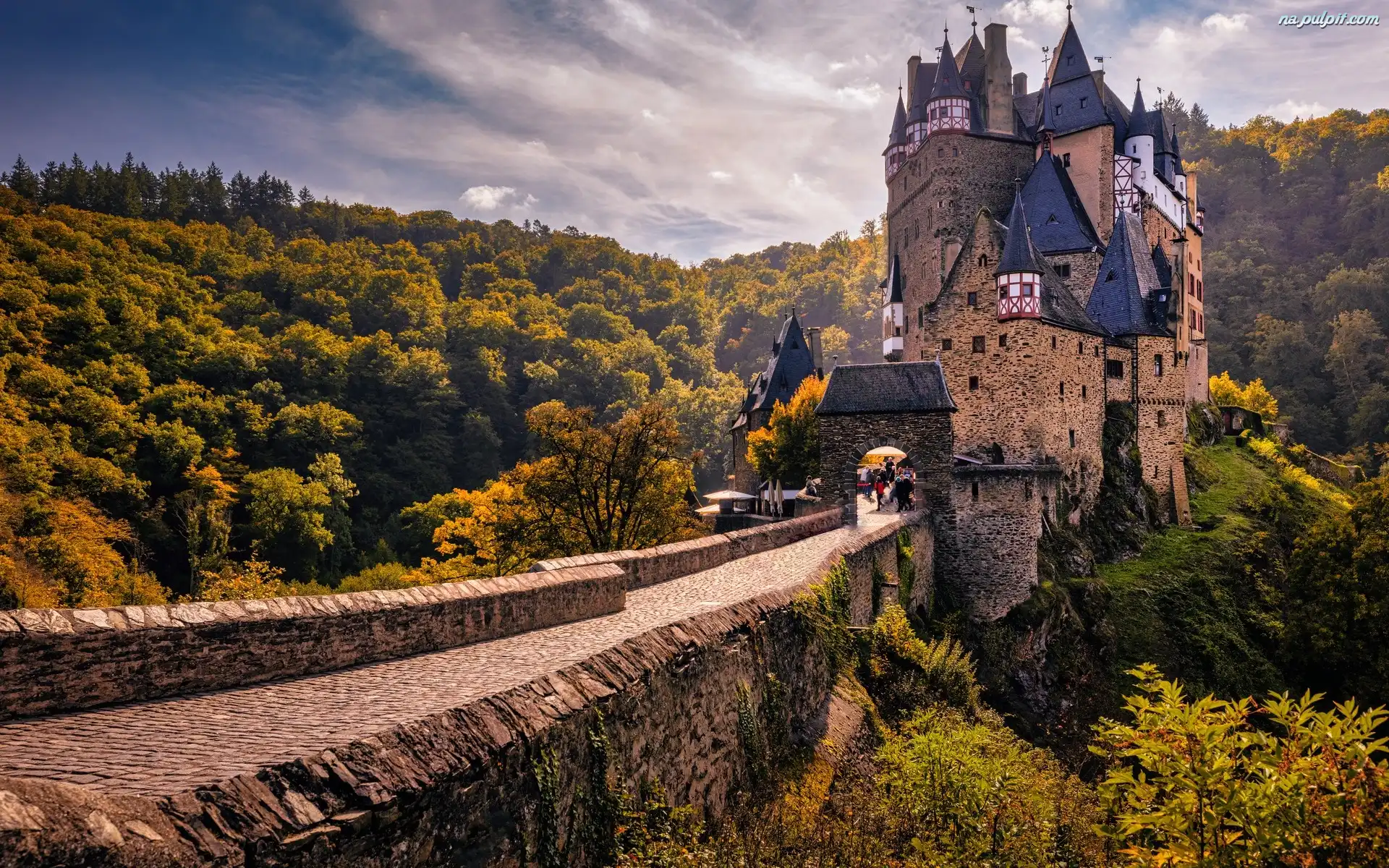 Niemcy, Gmina Wierschem, Jesień, Zamek Eltz, Drzewa, Las, Nadrenia Palatynat Na Pulpit