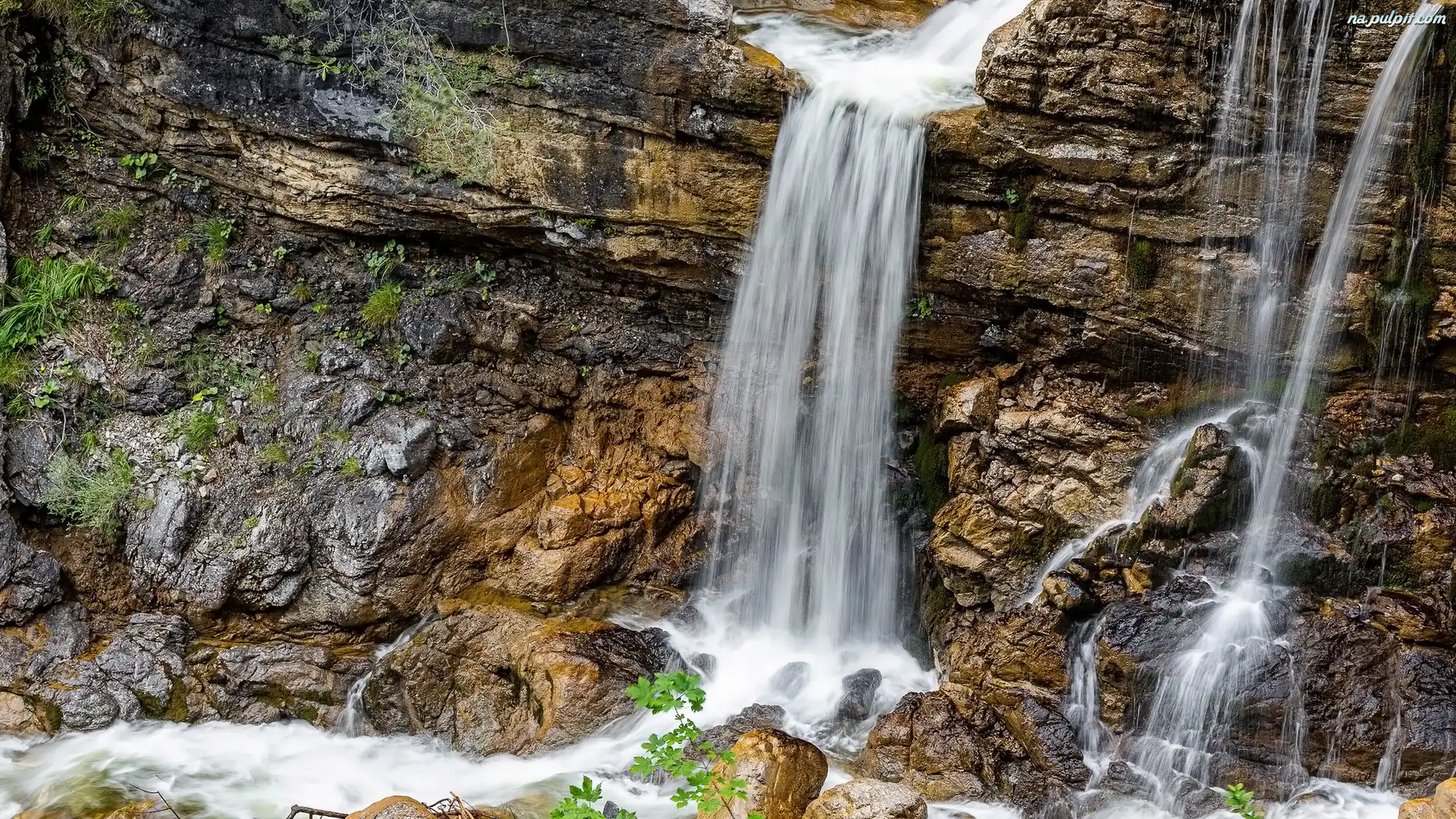 Bawaria, Skała, Wodospad, Niemcy, Kuhaway Waterfall Na Pulpit