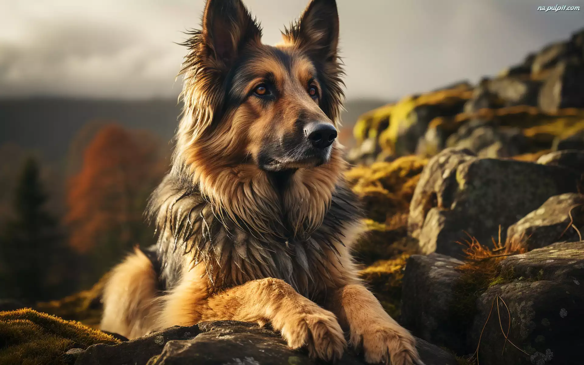 Łapy, Pies, Owczarek niemiecki, Kamienie, Mordka Na Pulpit
