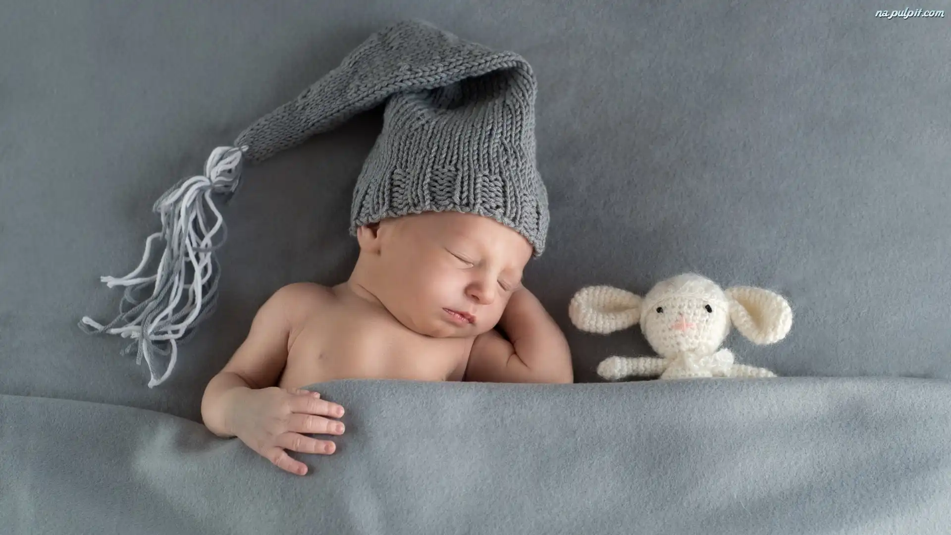 Koc, NiemowlÄ™, Sen, Przytulanka, Owieczka, Szara, Dziecko, Czapka Na Pulpit