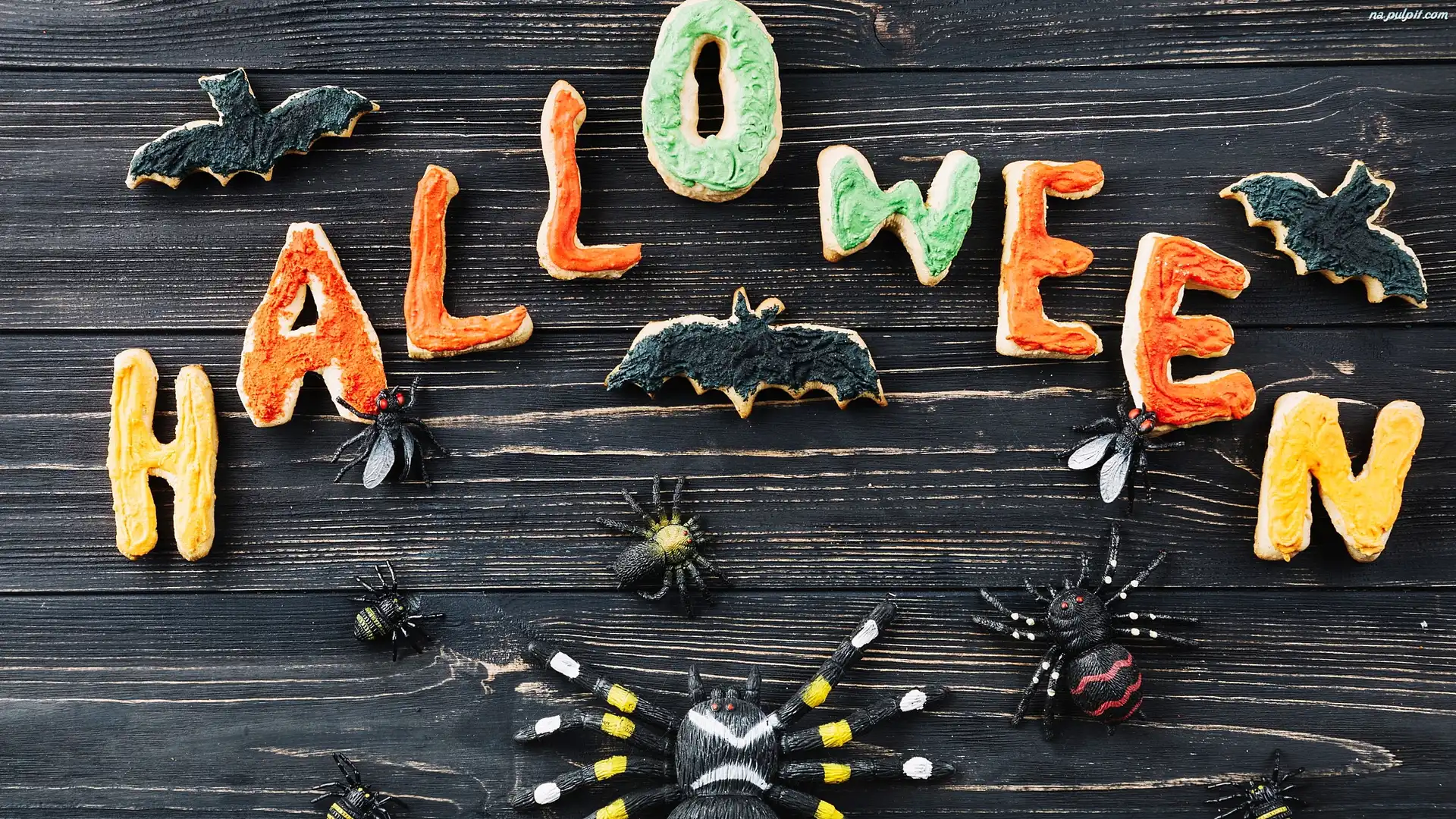 Nietoperze, Halloween, Napis, Ciasteczka, PajÄ…ki Na Pulpit