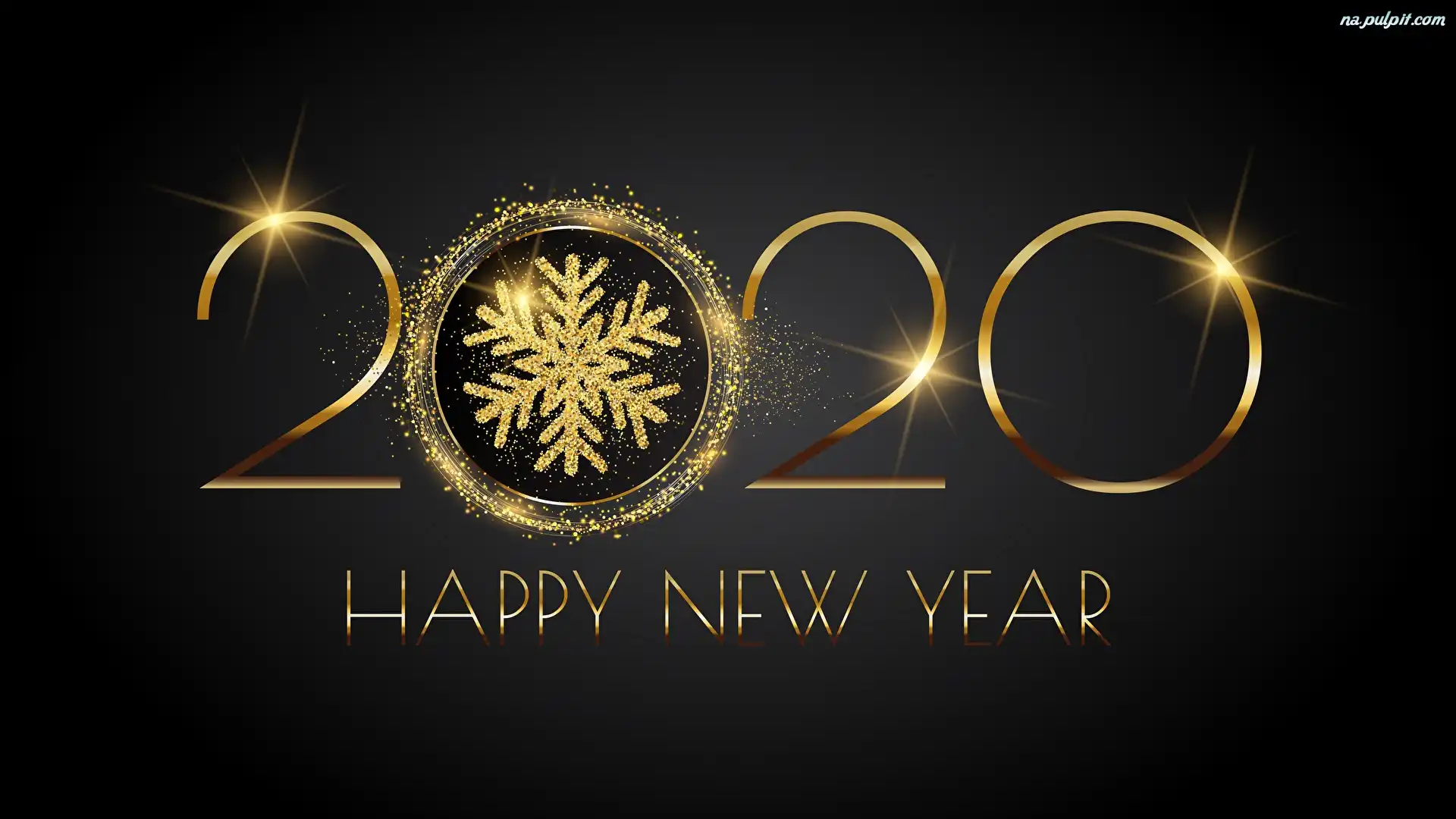 Happy New Year, 2020, Napis, Cyfry, Złote, Nowy Rok, Śnieżynki Na Pulpit