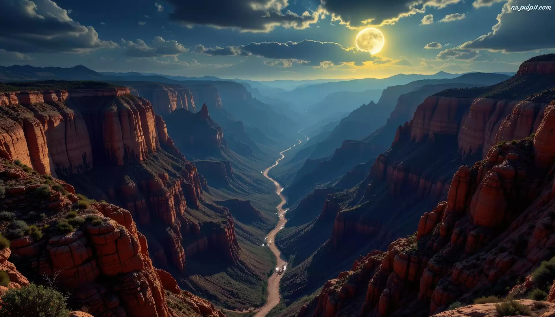 Księżyc, Góry, Kanion, Noc, Skały, AI Na Pulpit