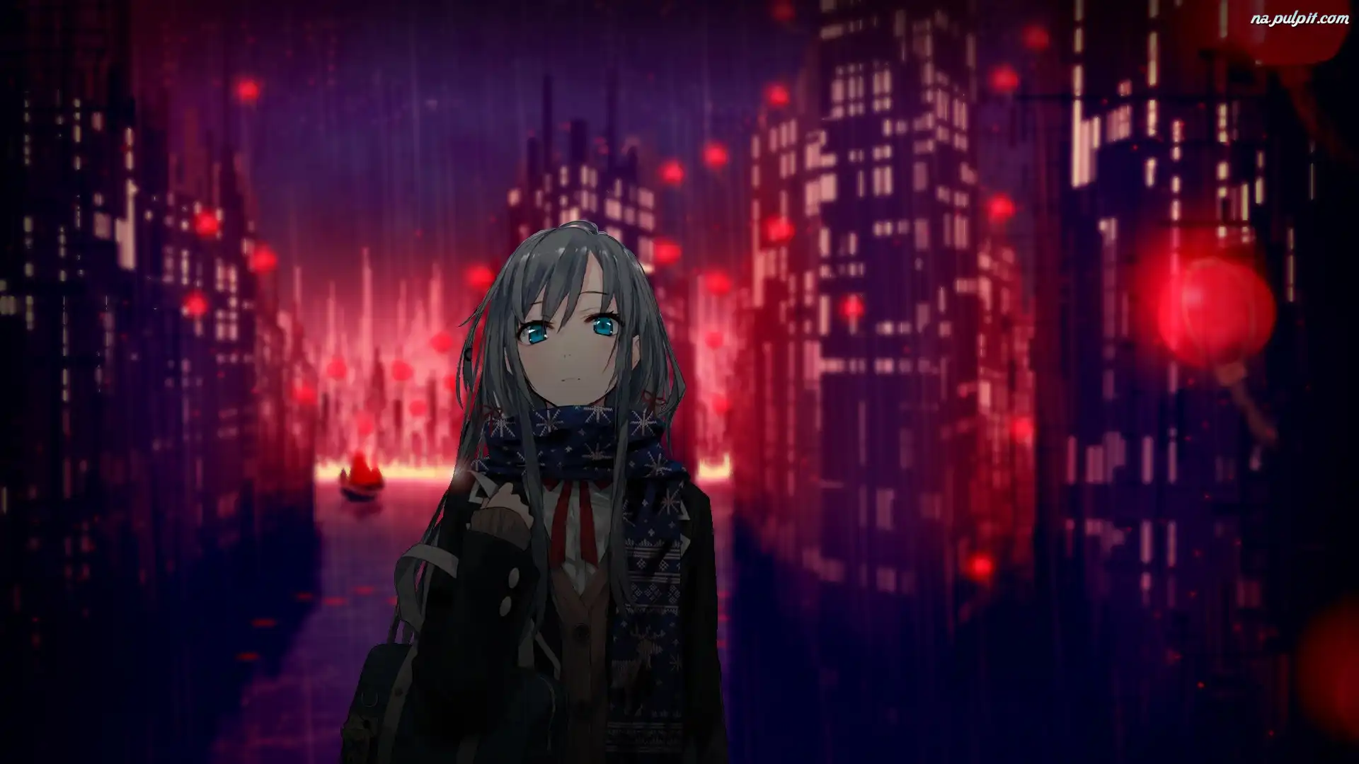 Noc, Dziewczyna, Smutna, Manga Anime, Deszcz