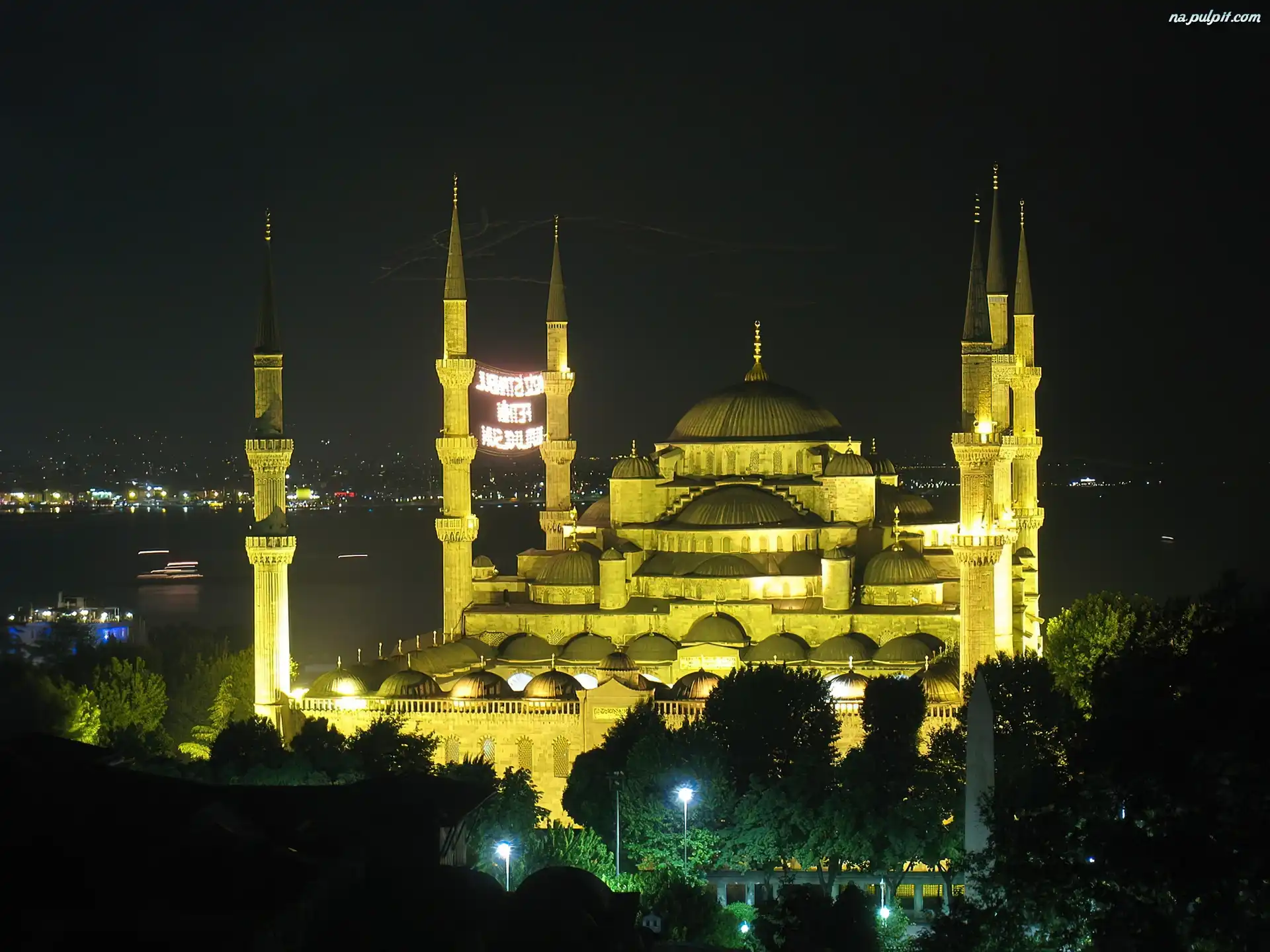 Noc, Meczet, Błękitny, Istambuł Na Pulpit