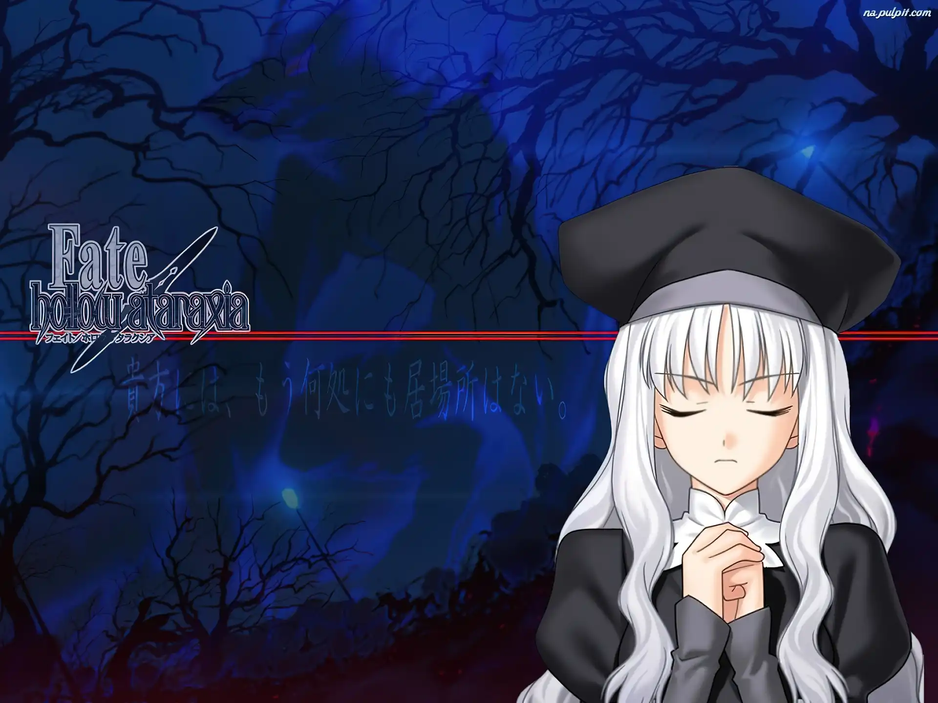 czapka, noc, drzewa, Fate Stay Night, kobieta Na Pulpit