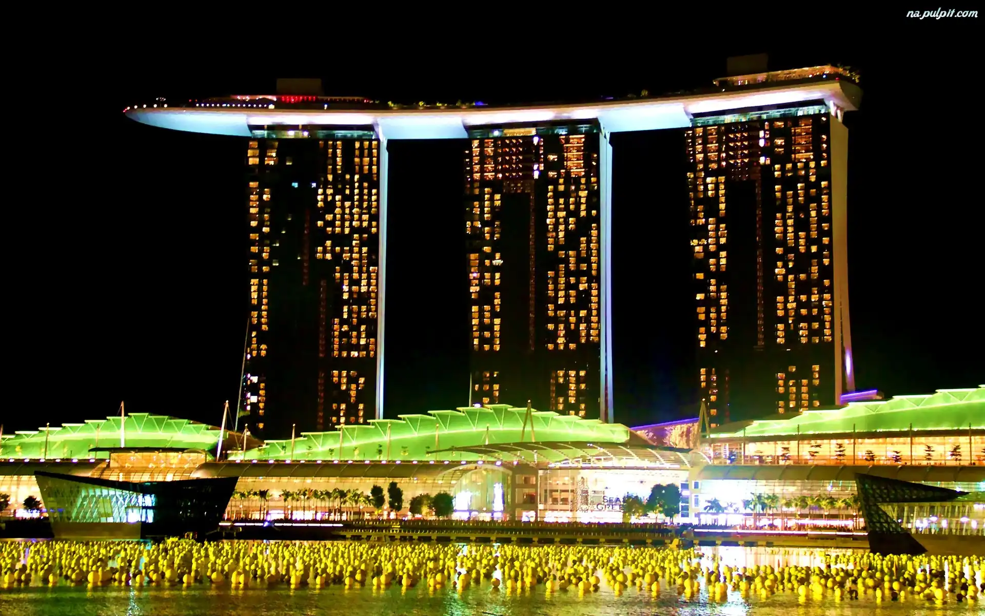 Dekoracja, Noc, Marina Bay Sands, Singapur, Zielona Na Pulpit