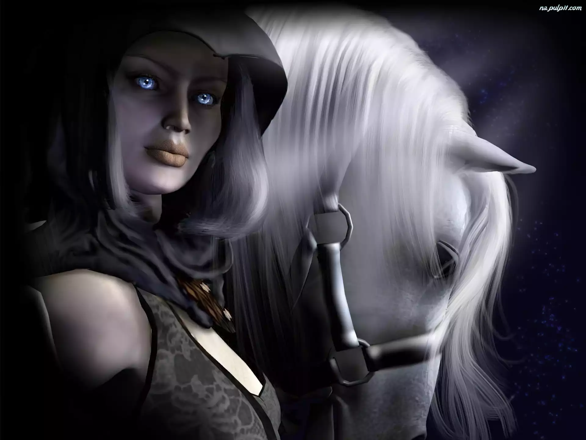 Noc, Biały, Kobieta, Koń Na Pulpit