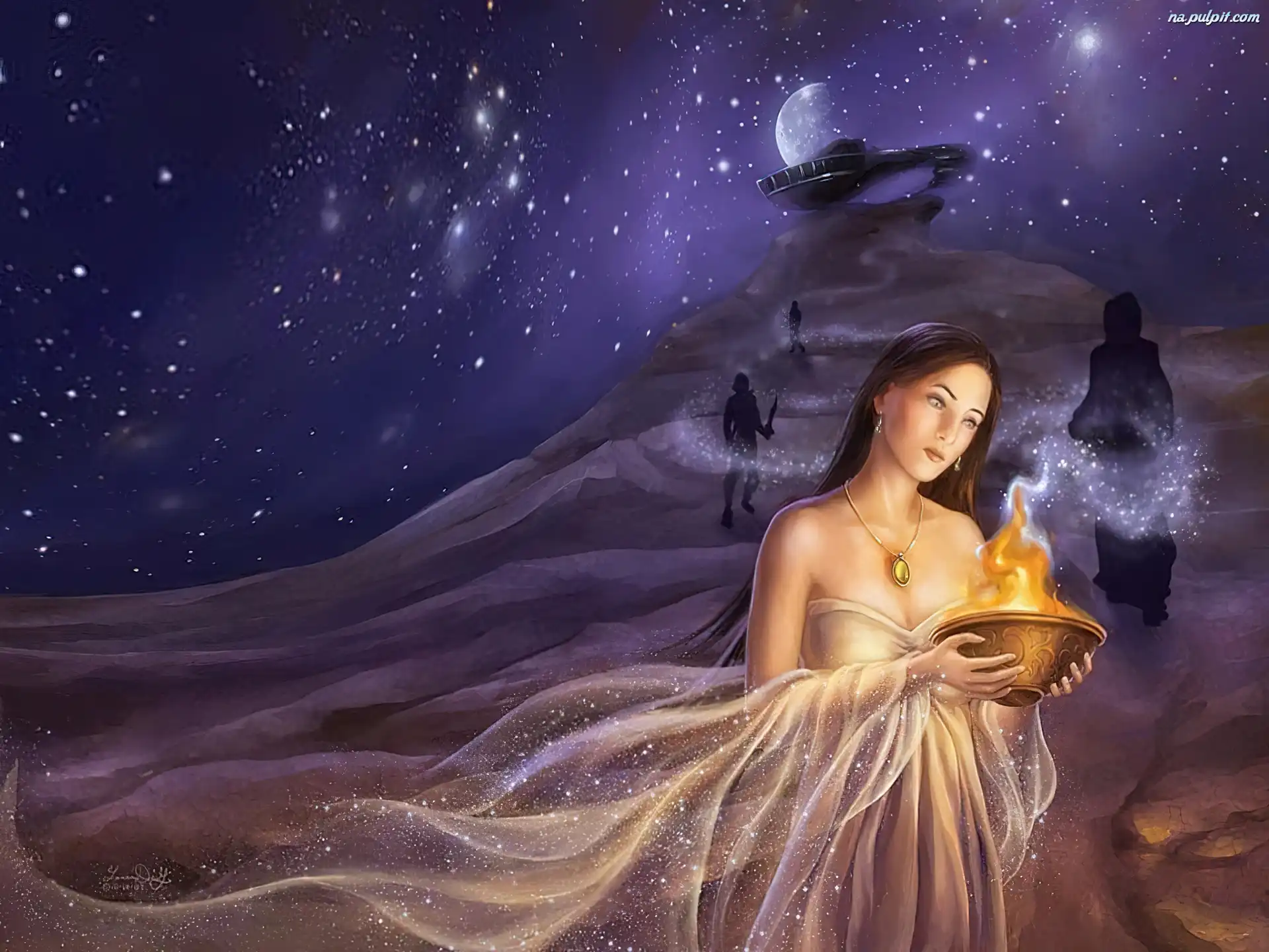 Noc, Medalion, Kobieta, Płomień