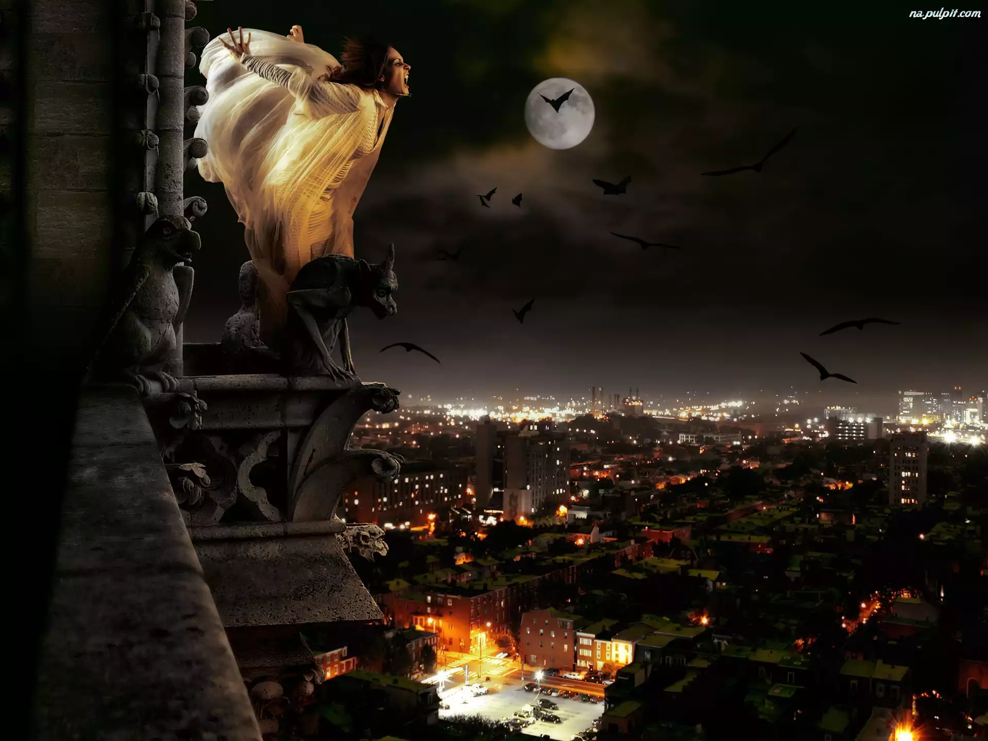 Noc, Wampir, Kobieta, Księżyc Na Pulpit