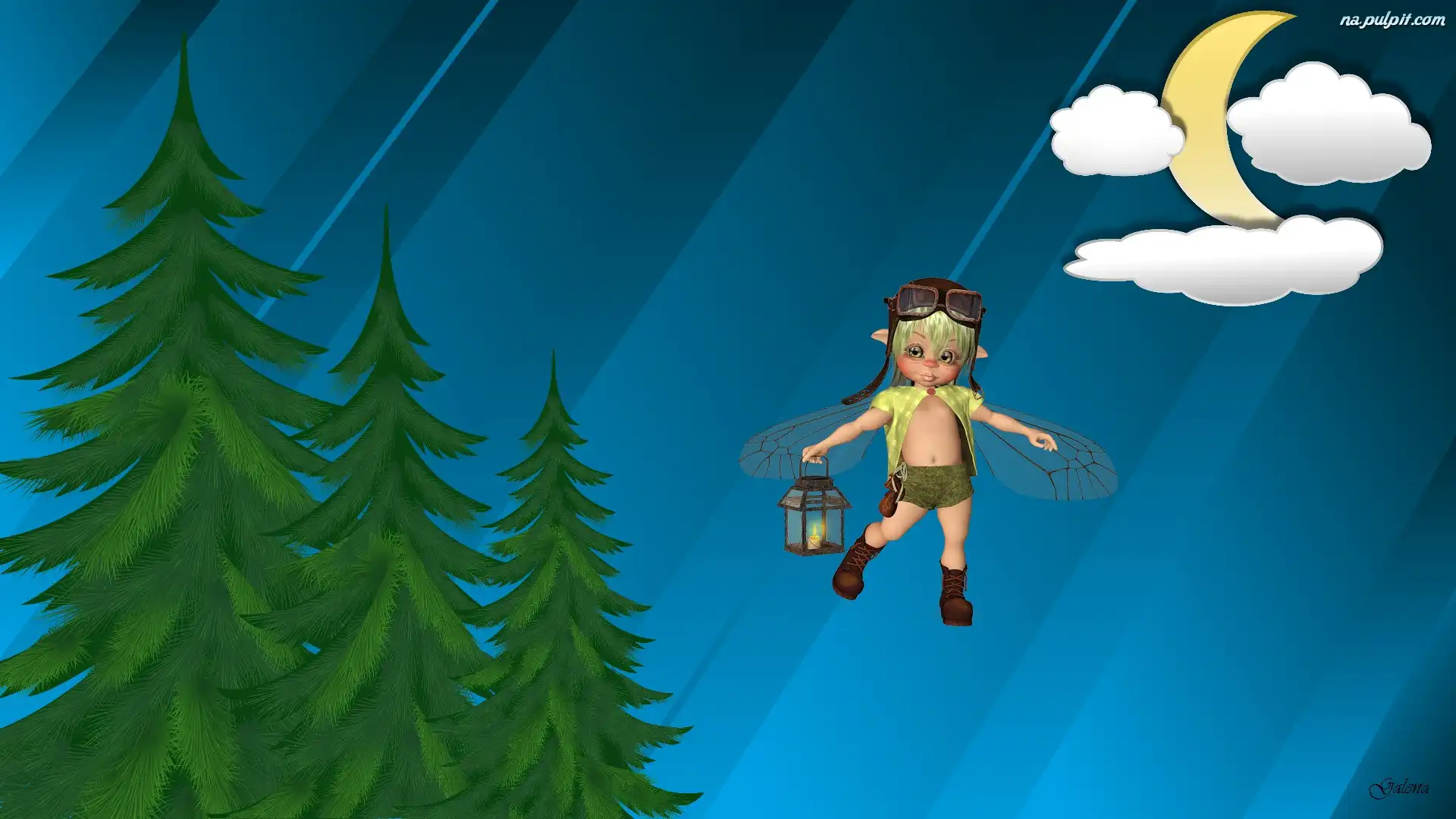 Noc, Drzewa, Laleczka, Księżyc Na Pulpit