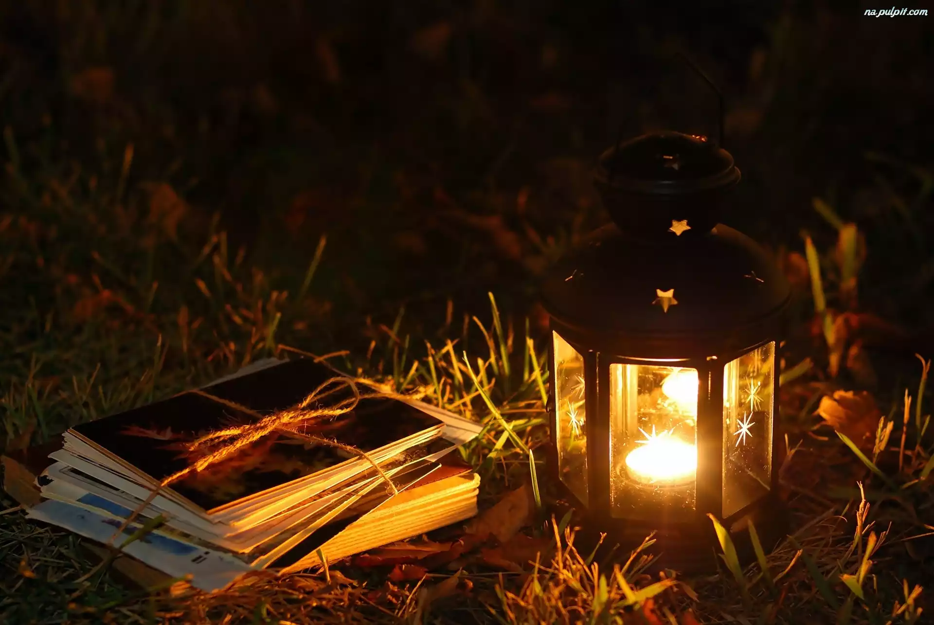 Noc, Książka, Lampion, Widokówki Na Pulpit