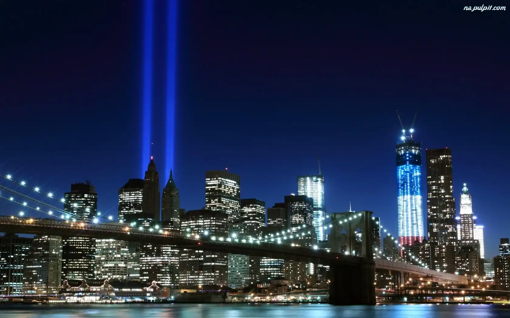 Noc, Most Brookliński, Manhattan, Reflektory Na Pulpit