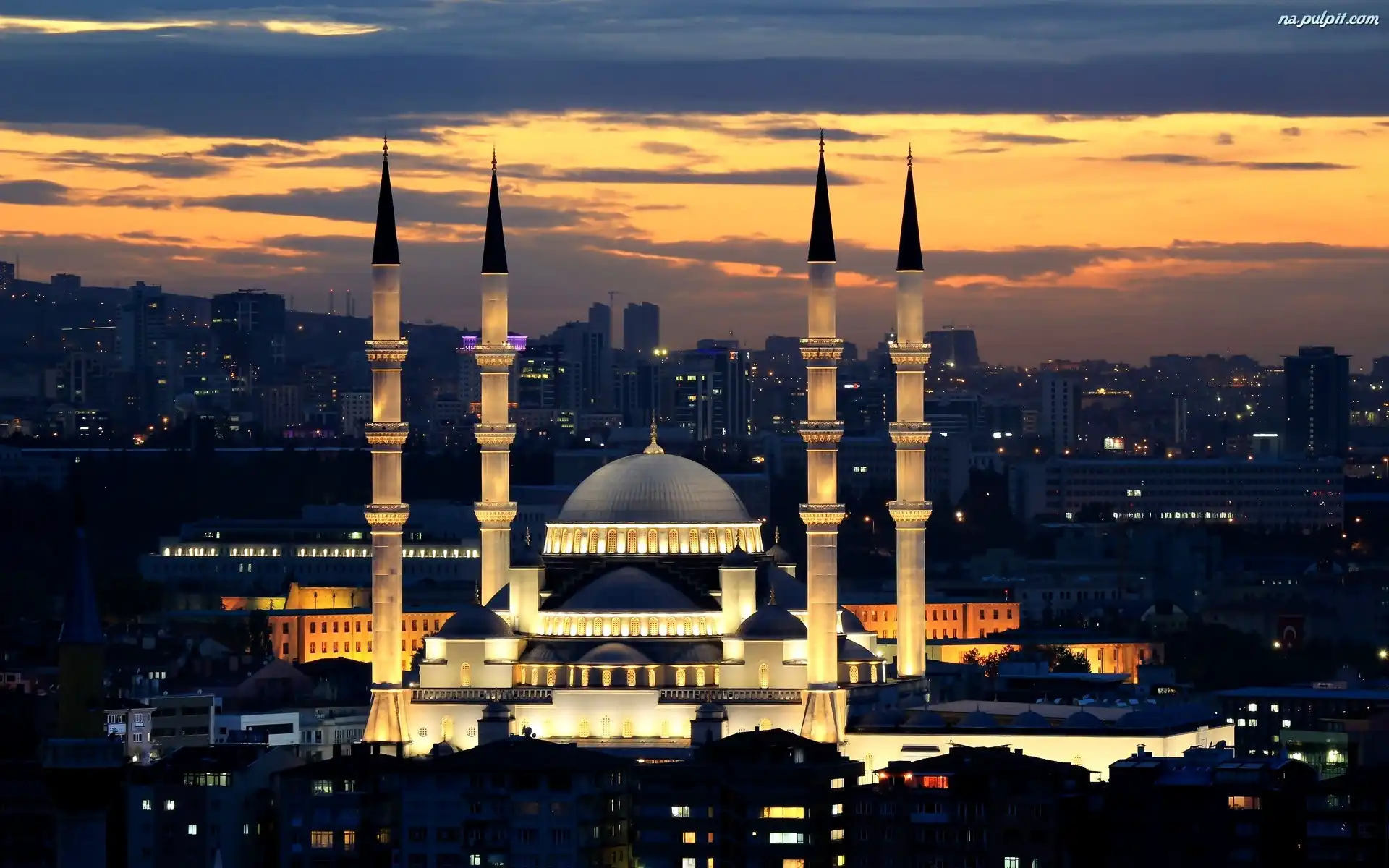 Noc, Turcja, Ankara, Meczet Kocatepe Na Pulpit