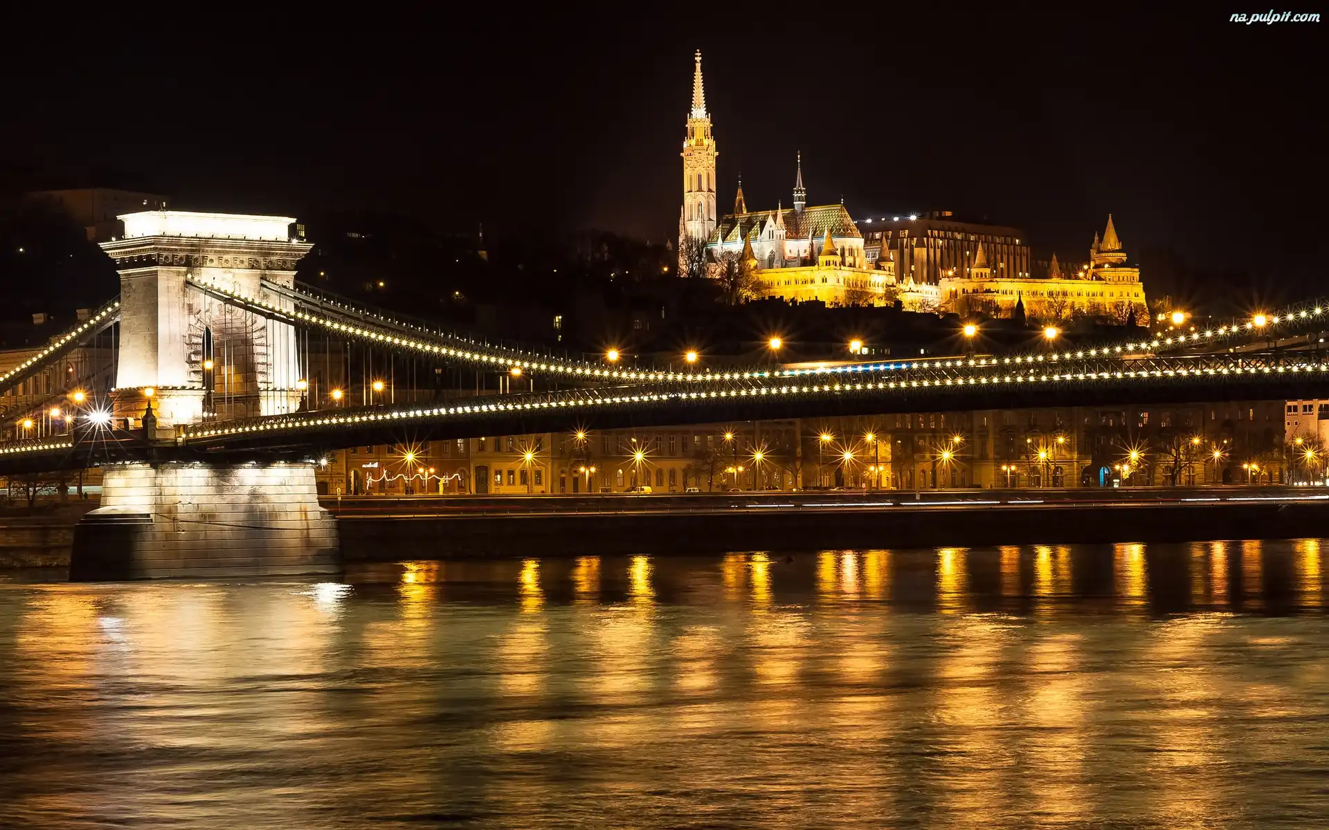Noc, Rzeka, Budapeszt, Światła, Miasto, Most Na Pulpit
