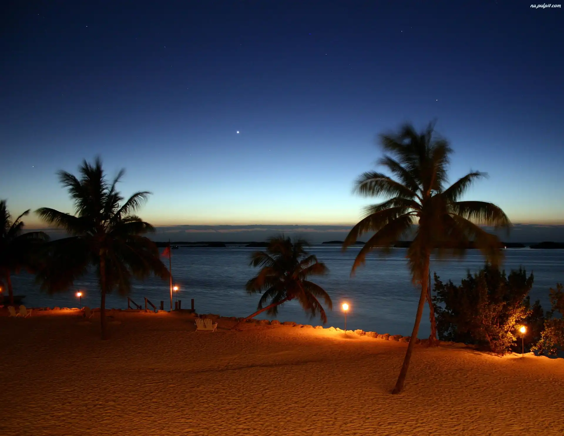 Noc, Plaża, Morze, Palmy Na Pulpit