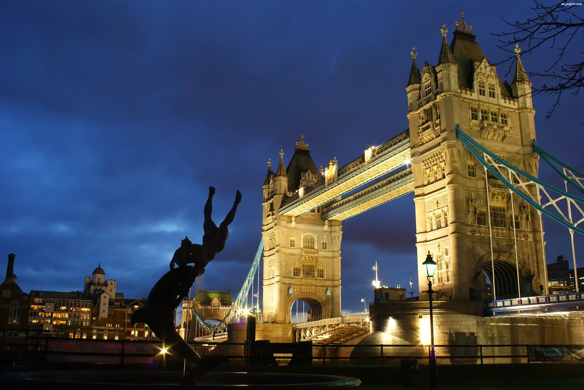 Noc, Tower Bridge, Most, Londyn Na Pulpit