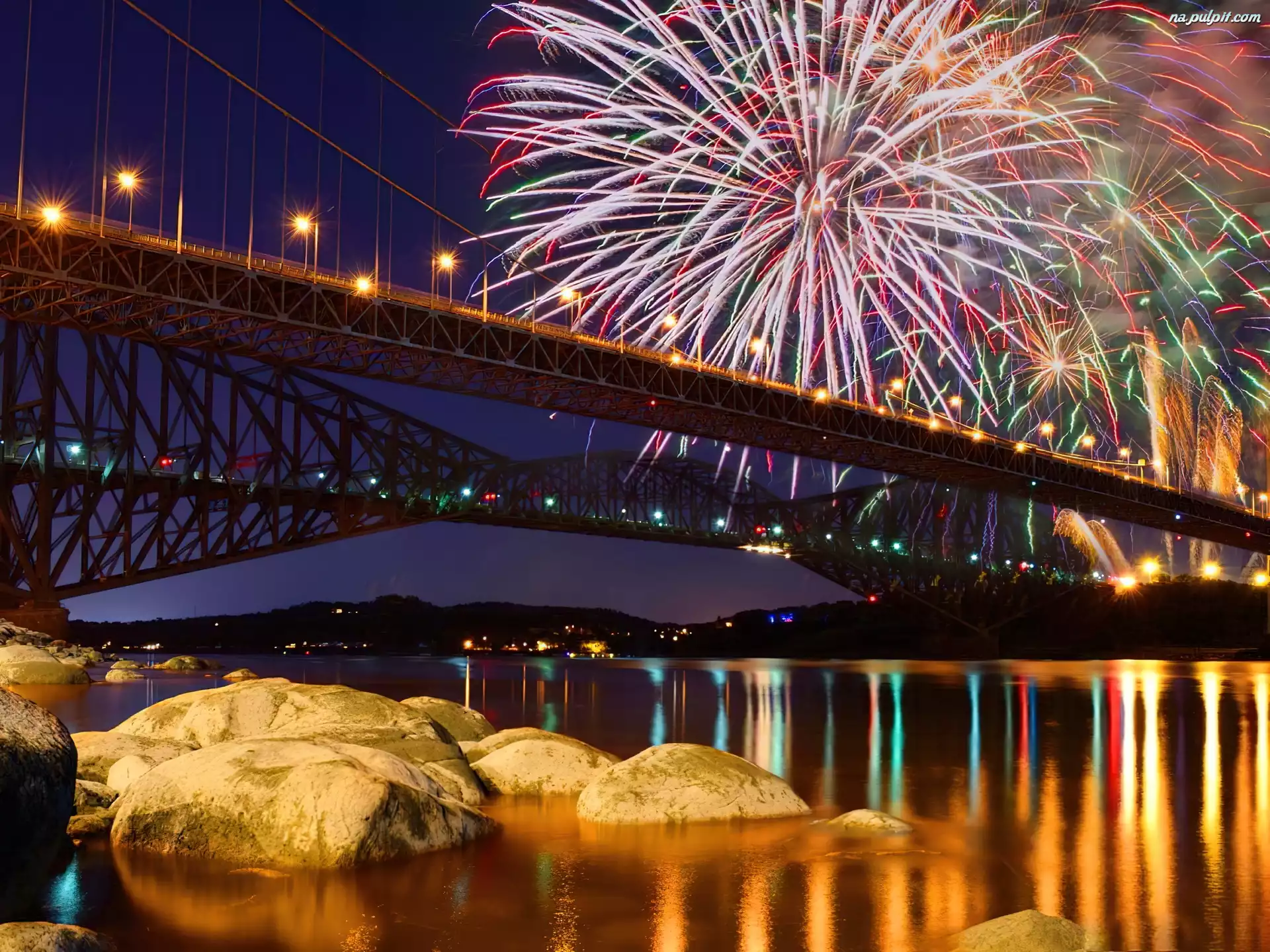 Noc, Rzeka, Most, Fajerwerki Na Pulpit