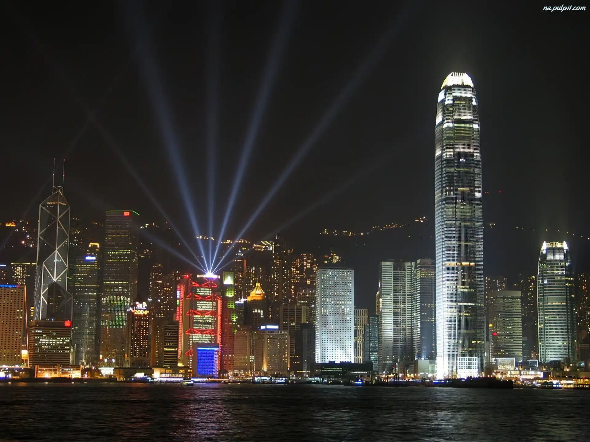 Noc, Wielkiego, Lasery, Neony, Miasta Na Pulpit