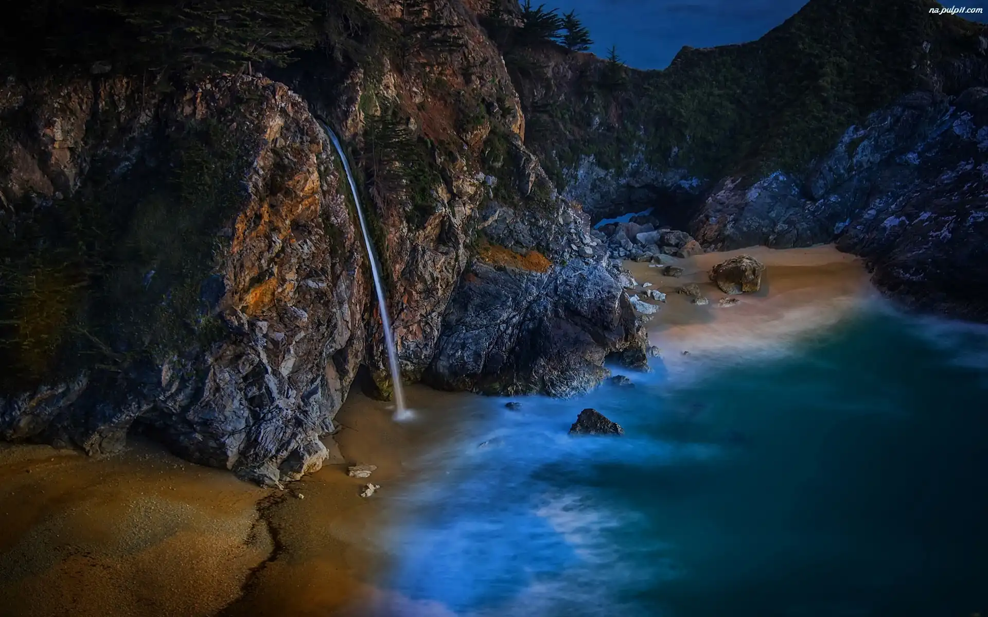 Noc, Wybrzeże, Skaliste, Wodospad Na Pulpit