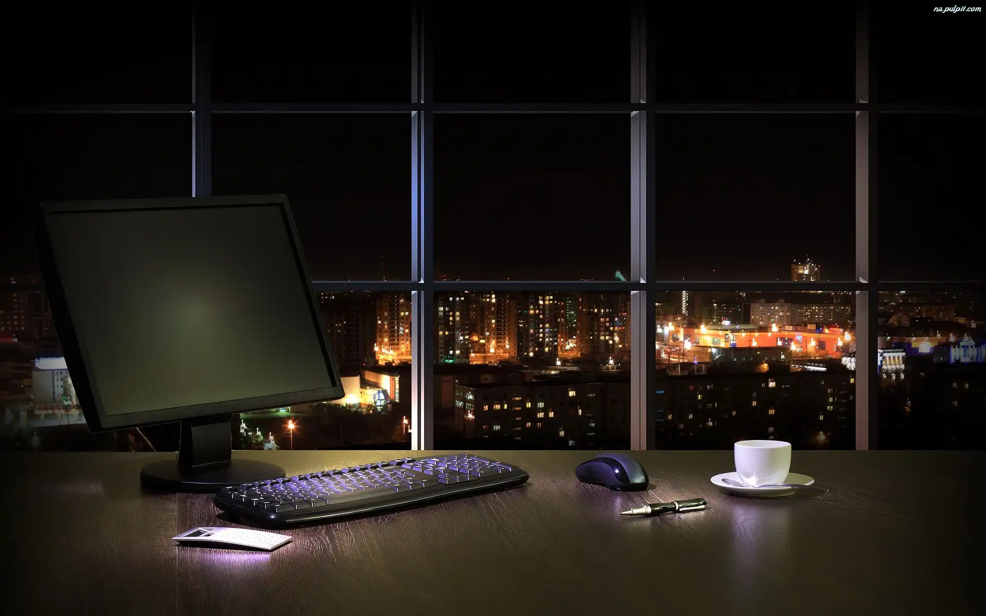 Noc, Laptop, Biurko, Wnętrze, Miasto Na Pulpit