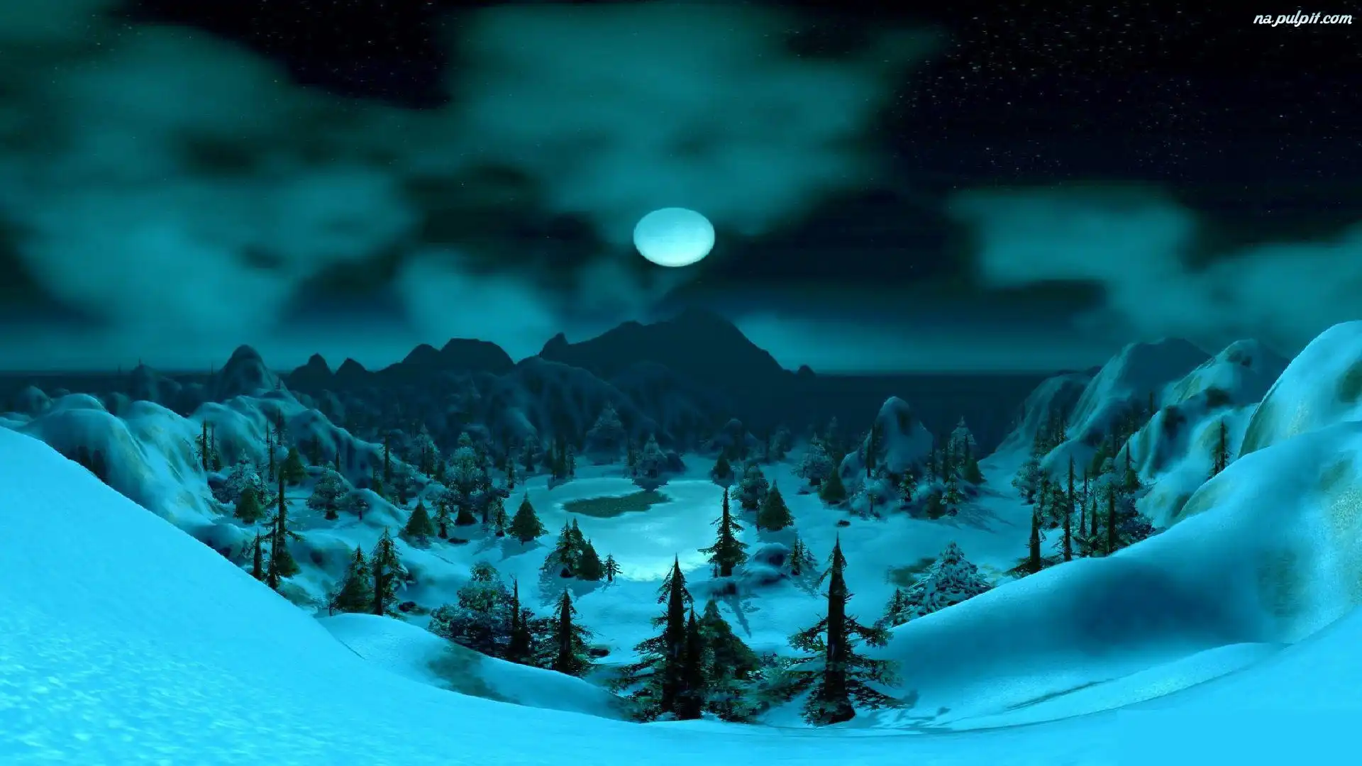 Noc, Góry, Drzewa, Zima, Księżyc Na Pulpit
