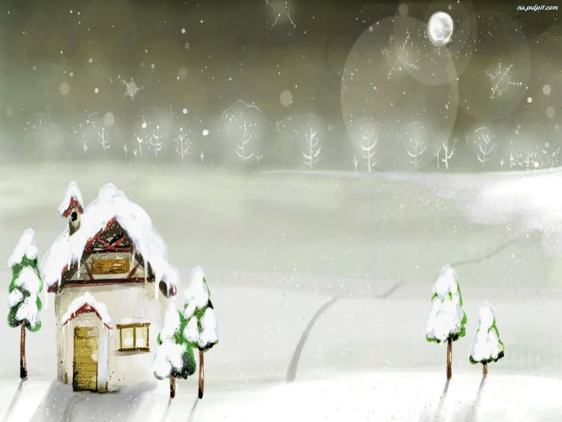 Noc, Śnieg, Zima, Dom Na Pulpit