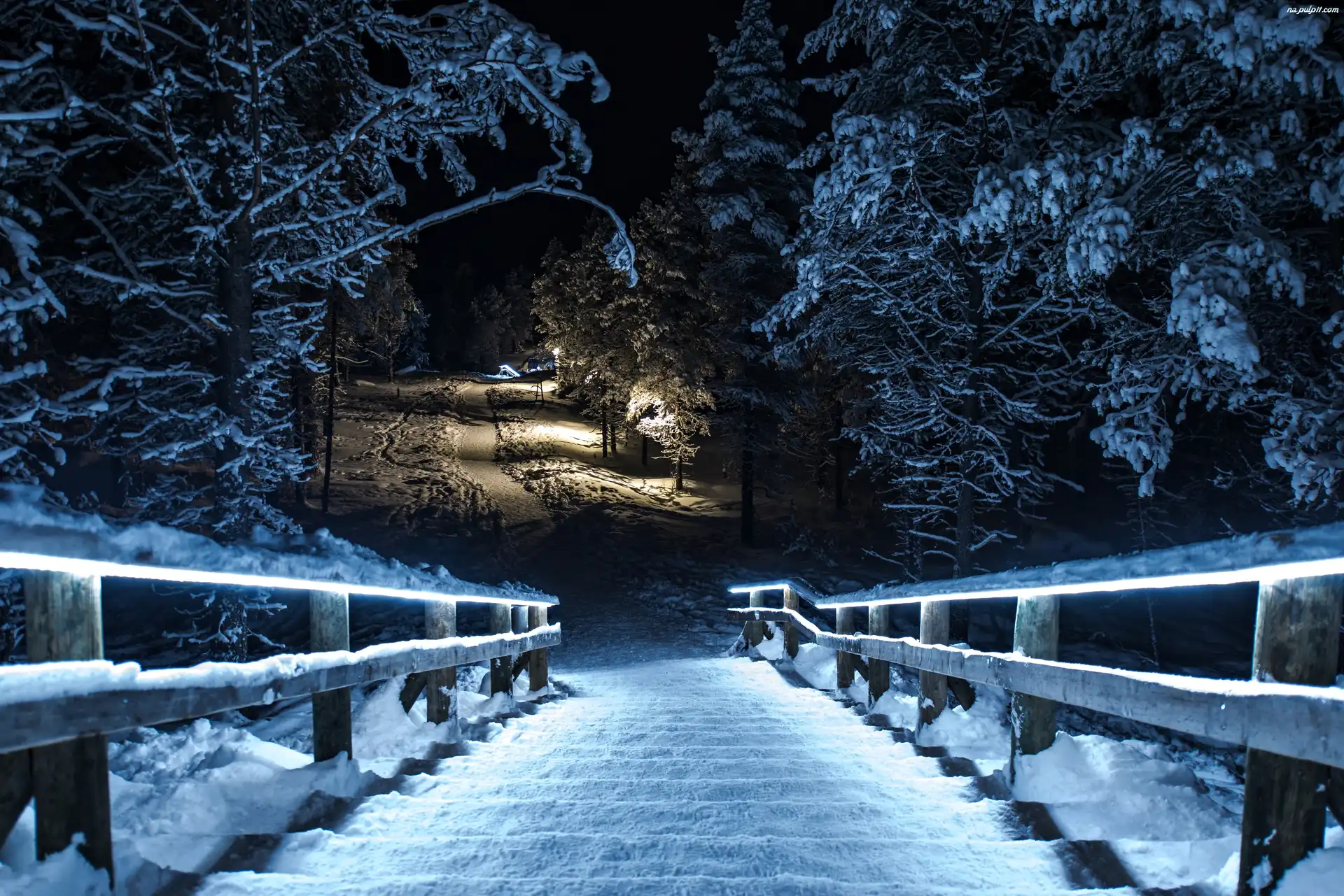 Noc, Schody, Park, Zima, Światło Na Pulpit
