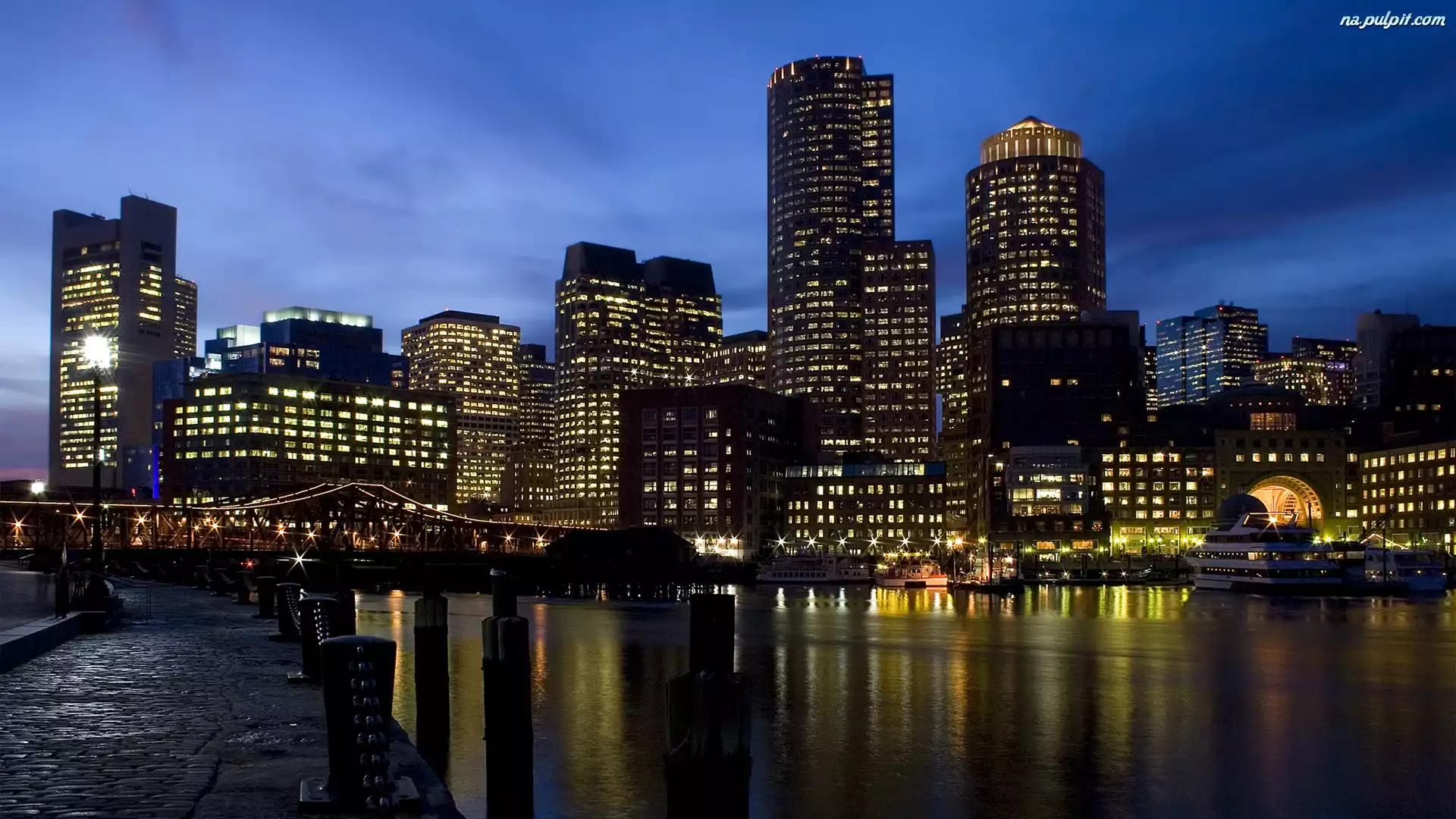 Nocą, Statki, Most, Deptak, Miasto Na Pulpit