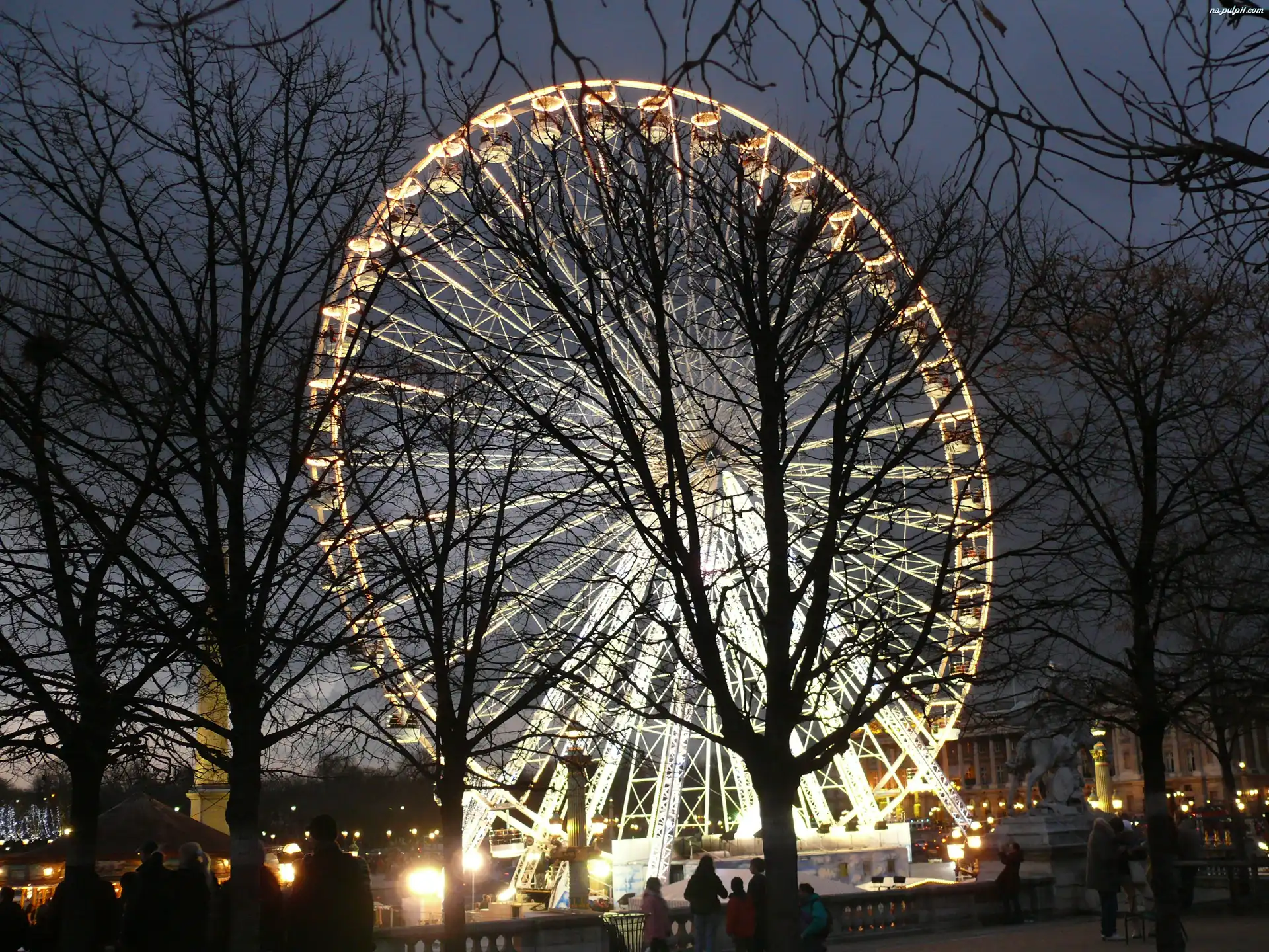 nocą, oświetlony, diabelski Młyn Na Pulpit