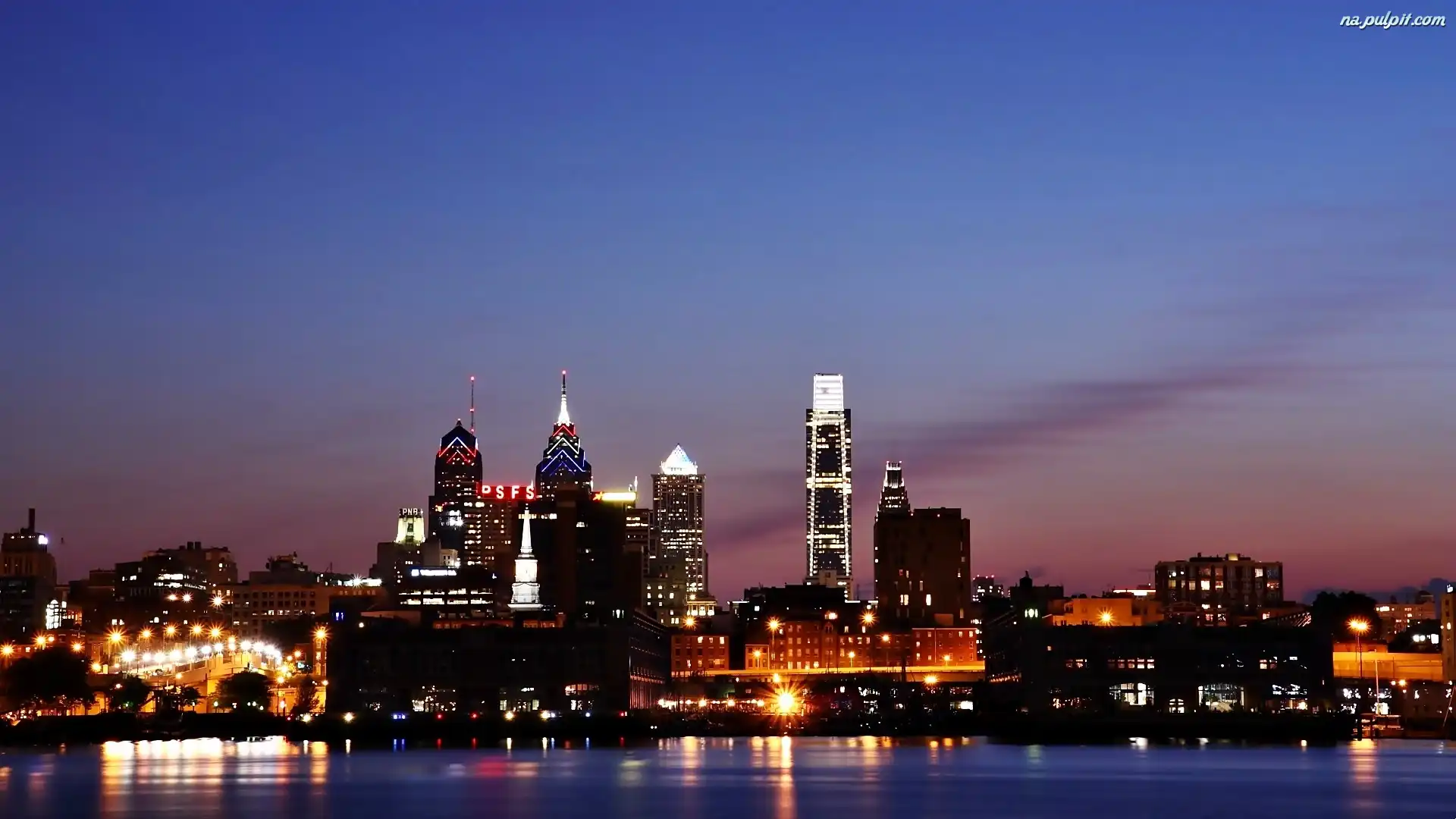 Nocą, Filadelfia, Chmur, Drapacze, Miasto Na Pulpit