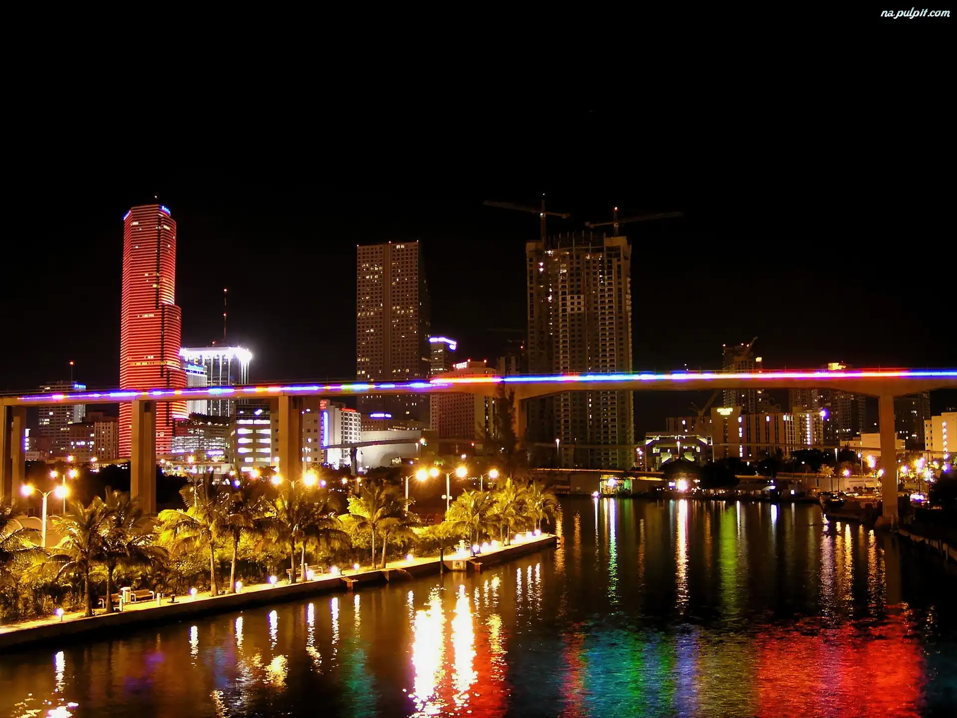 Nocą, Miasta, Centrum, Miami, Światła Na Pulpit