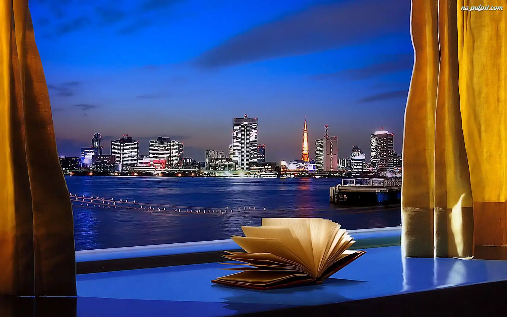 Nocą, Widok, Okno, Miasto Na Pulpit