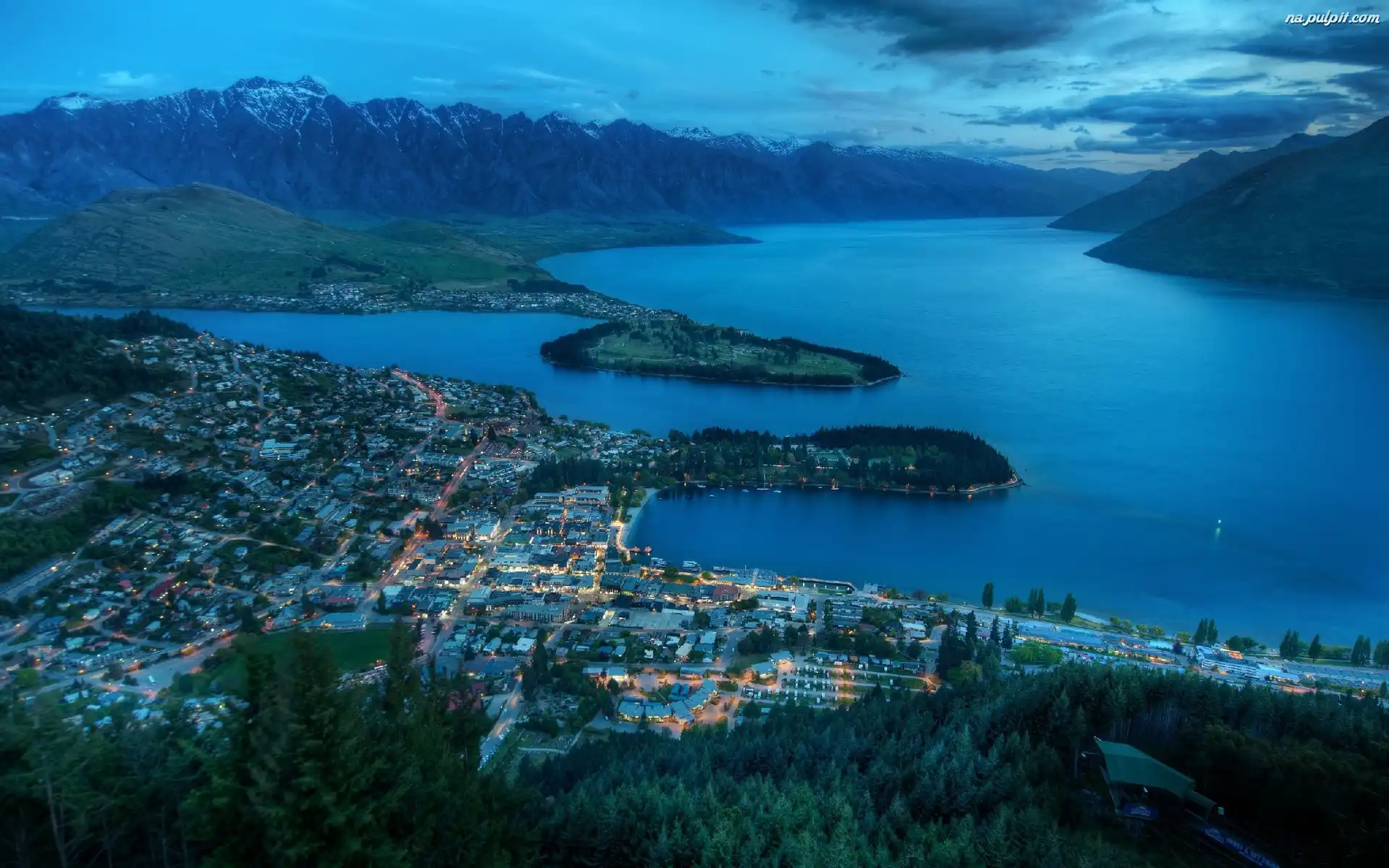 Nocą, Nowa Zelandia, Queenstown, Panorama Na Pulpit