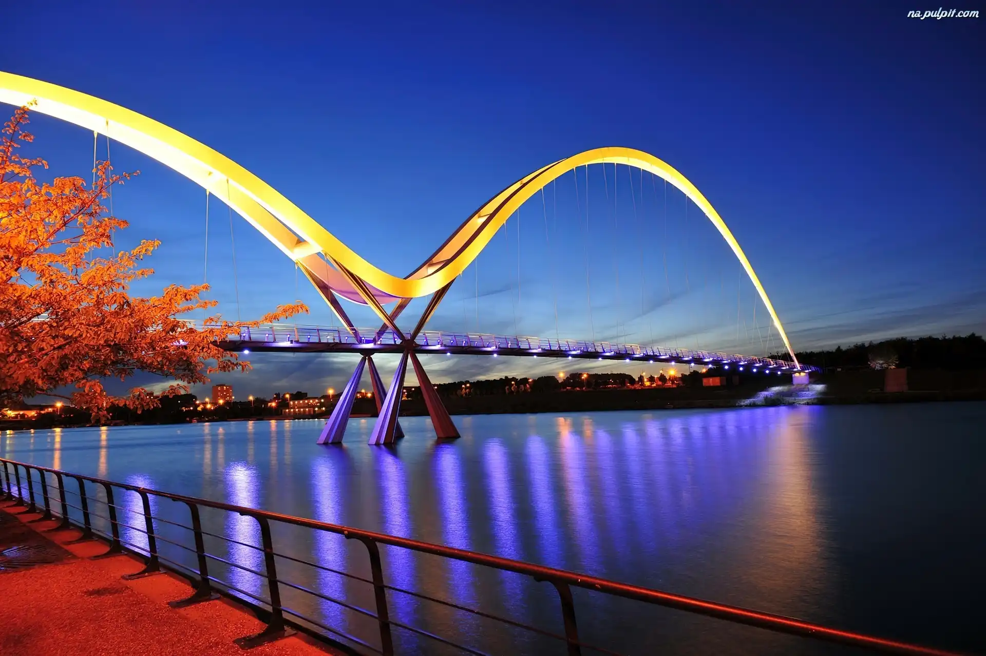 Nocą, Most, Rzeka, Miasto Na Pulpit