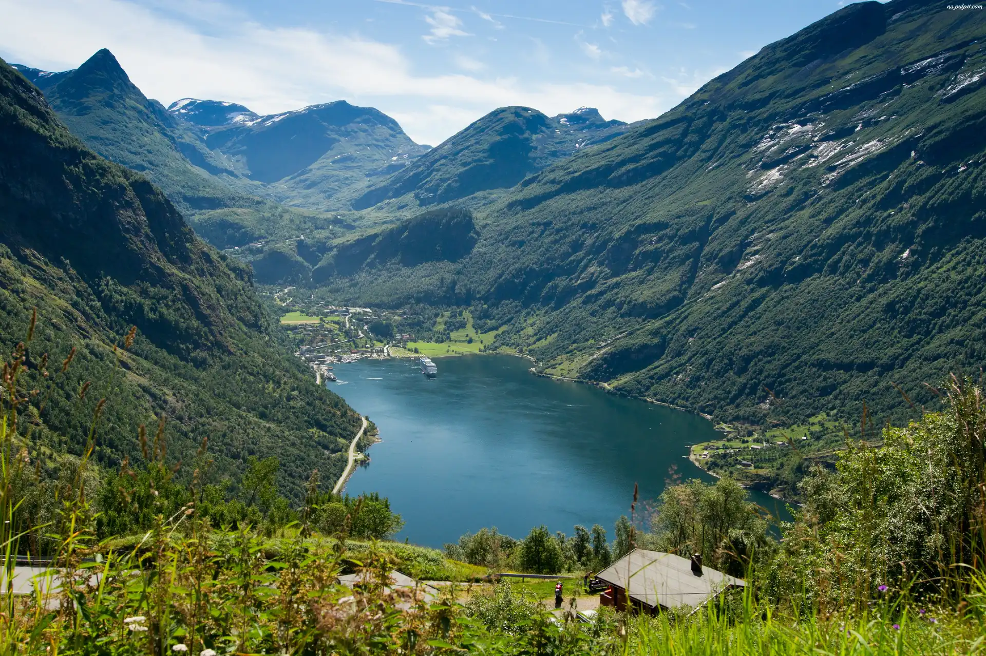 Norwegia, Góry, Jezioro, Fiord Geiranger