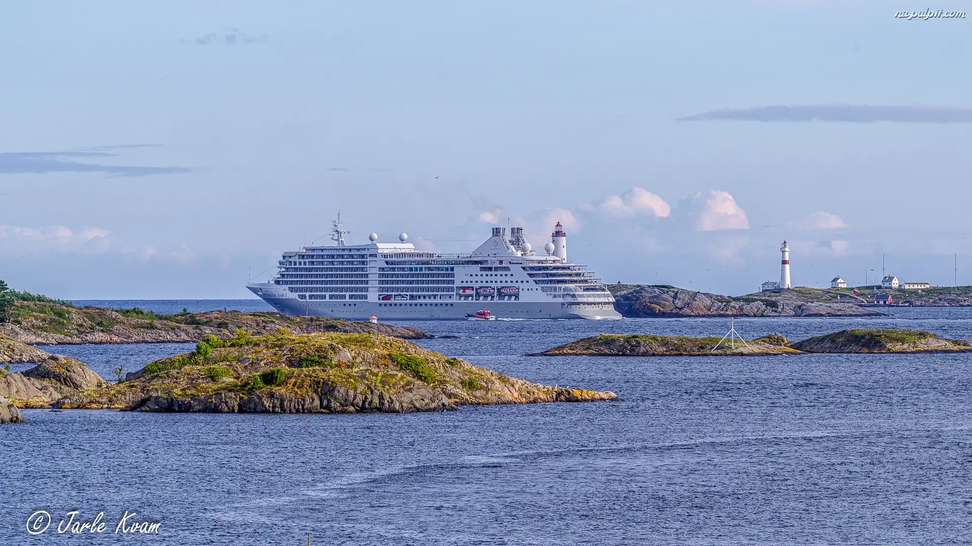Arendal, Morze, Latarnia morska, Statek pasażerski, Skały, Norwegia Na Pulpit
