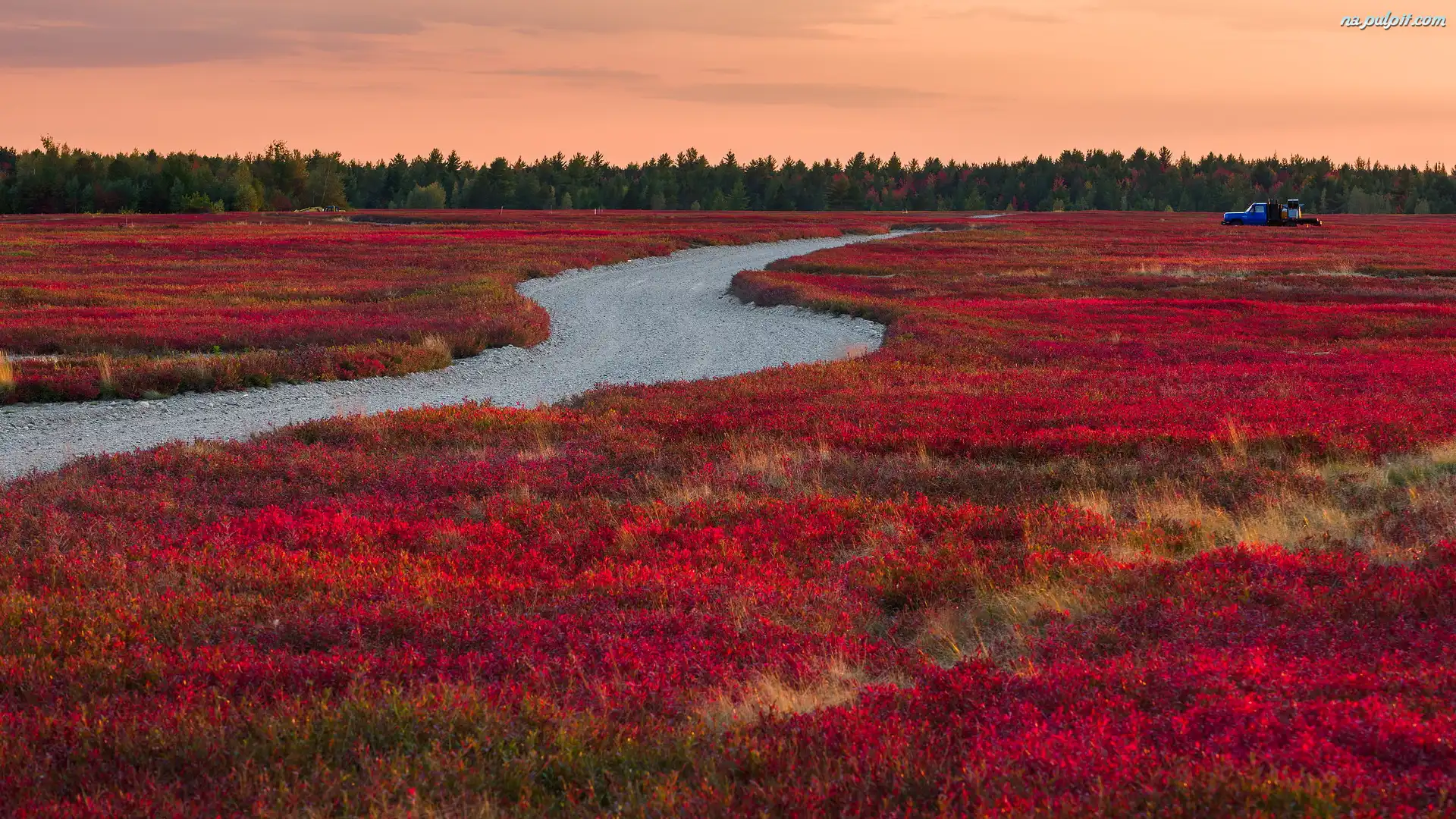 Nowa Anglia, Uprawa, Borówki amerykańskie, Żwirowa, Stan Maine, Stany Zjednoczone, Droga, Pole, Samochód Na Pulpit |