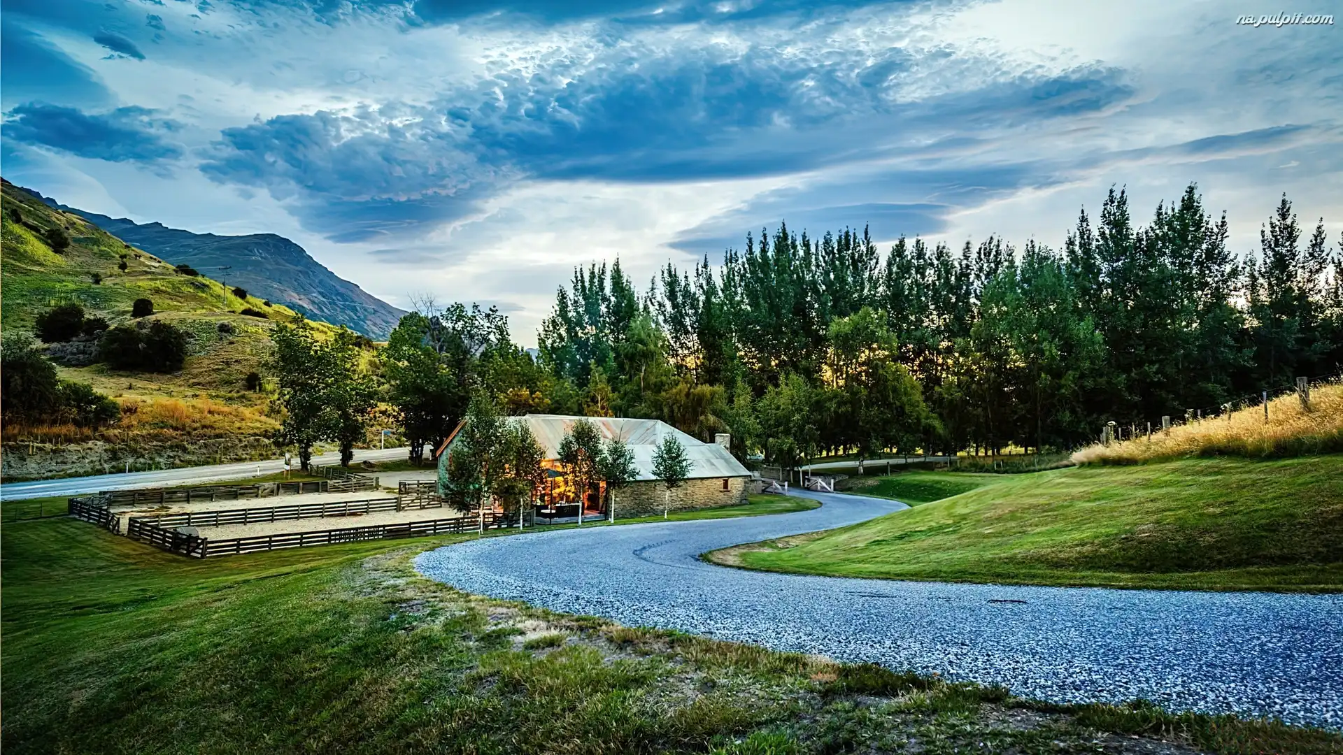 Górach, Droga, Piękna, W Dom, Palmy, Morze, Chmury Wyspa, Szkocja, Góra Mgłą, Drzewa, Las, Droga Góra Góry, Krzewy Chmury, Ulica, Zachód Słońca Domy, Słońca, Zachód, Rzeka Morze, Góry Drzewa, Drewniana, Las, Dróżka Góra, Zachody Śłońca Alberta, Montana, Jezioro, Prowincja Linia, Droga, Żółta Japonia, Dom